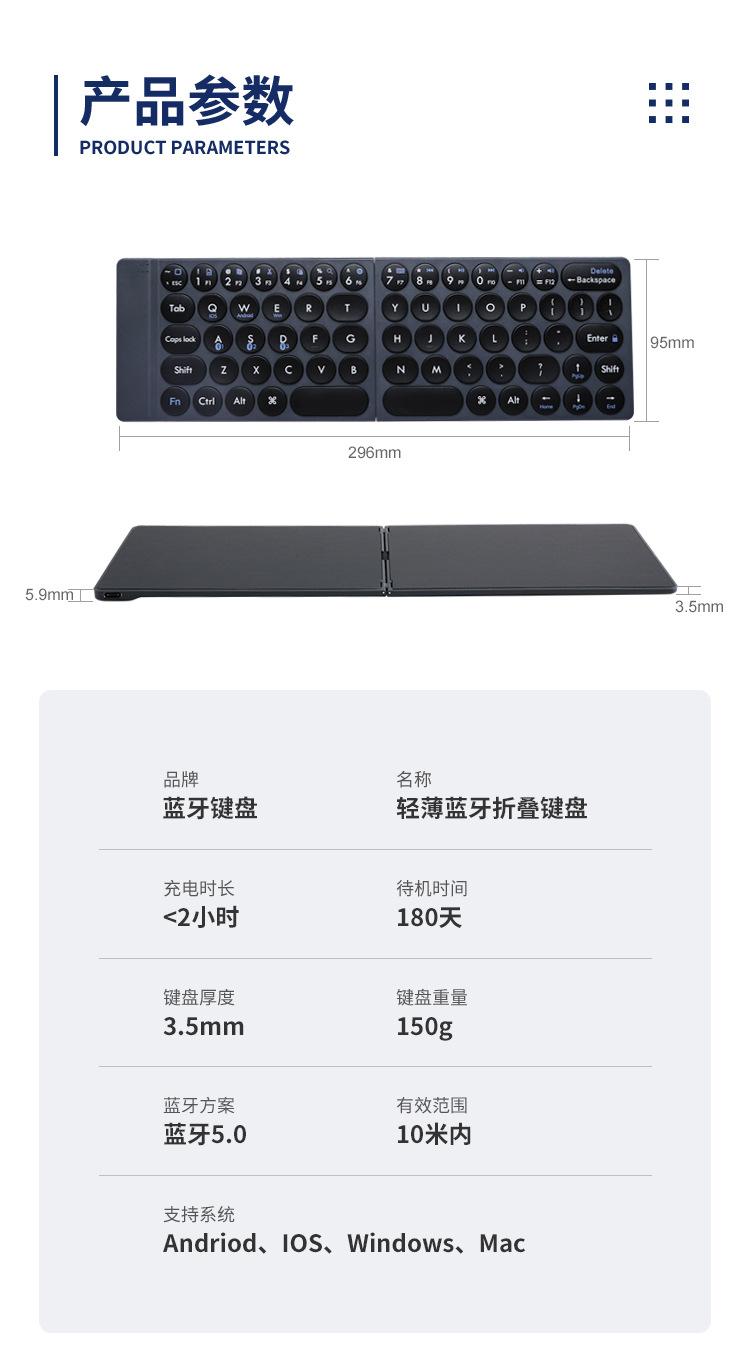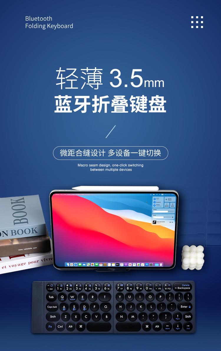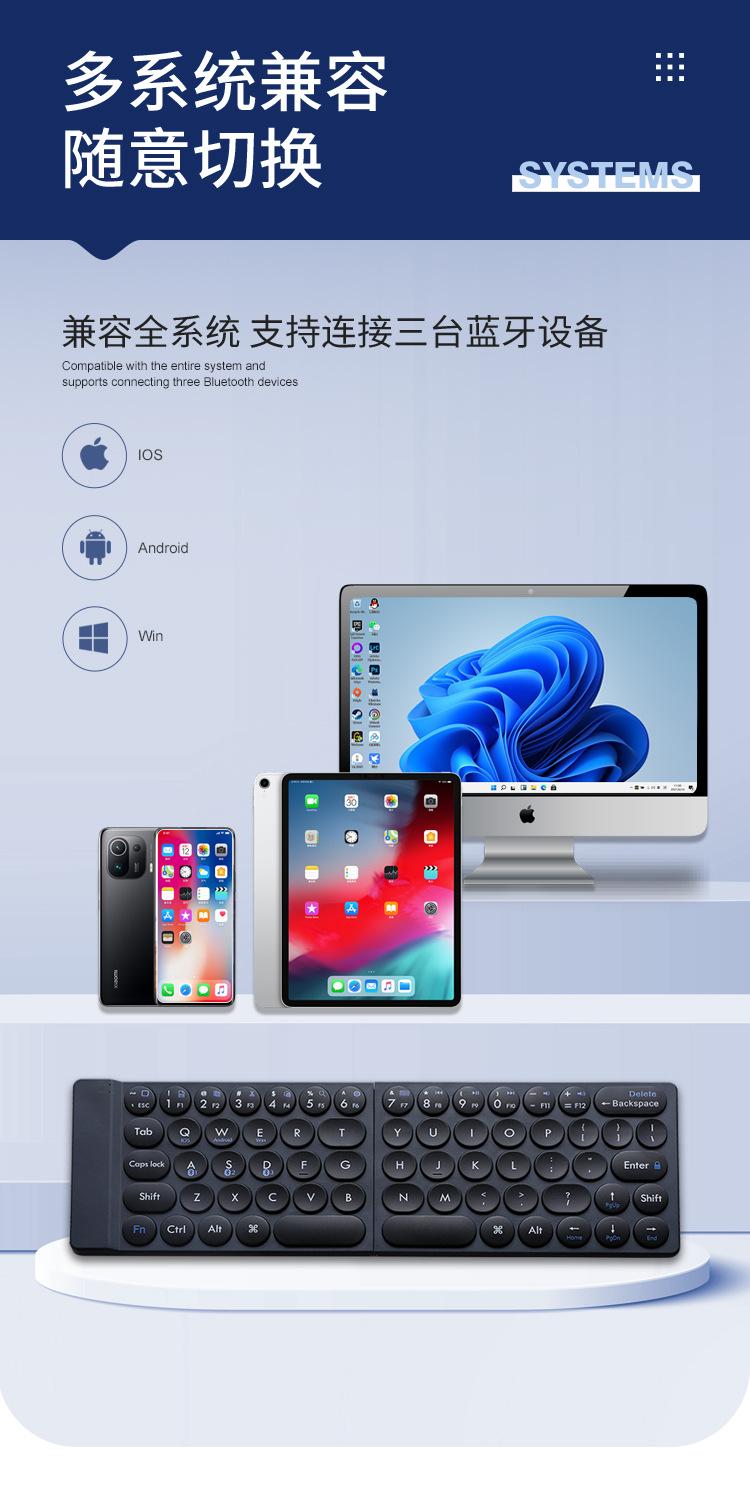 Teclado inalámbrico plegable con Bluetooth, silencioso, para iPad de Apple, compatible con teléfonos móviles, ultrafino, silencioso y compacto.