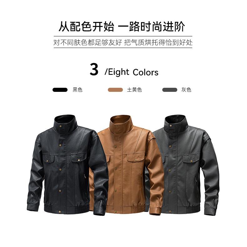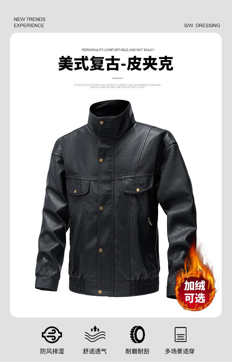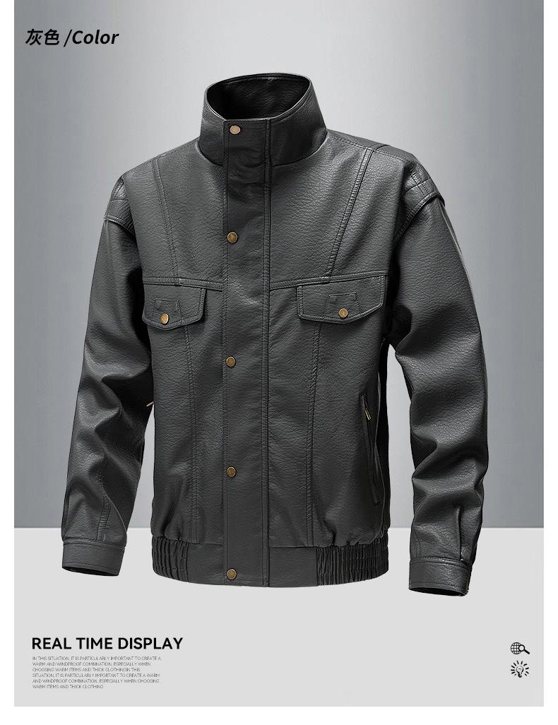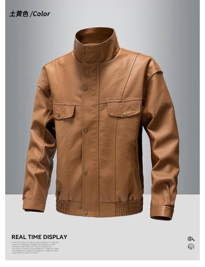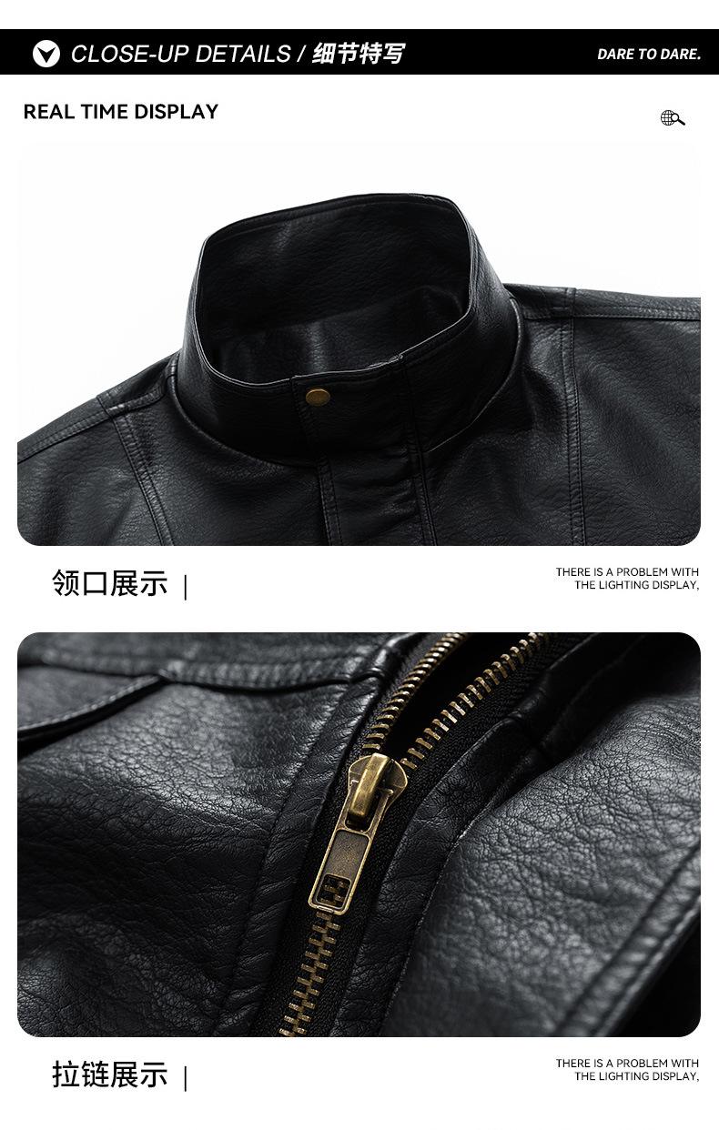 Compra Chaqueta de Cuero PU Retro Americana de Primavera y Otoño Chaqueta de Cuero para Motocicleta Color Puro Chaqueta de Cuero para Hombre Suministro Transfronterizo al por mayor en Joom.pro