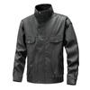 Chaqueta de Cuero PU Retro Americana de Primavera y Otoño Chaqueta de Cuero para Motocicleta Color Puro Chaqueta de Cuero para Hombre Suministro Transfronterizo