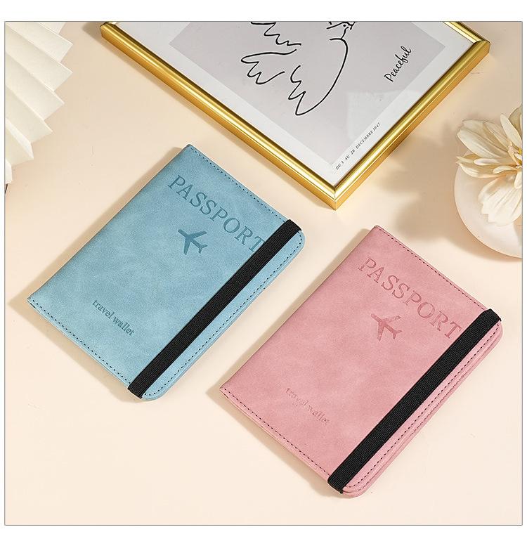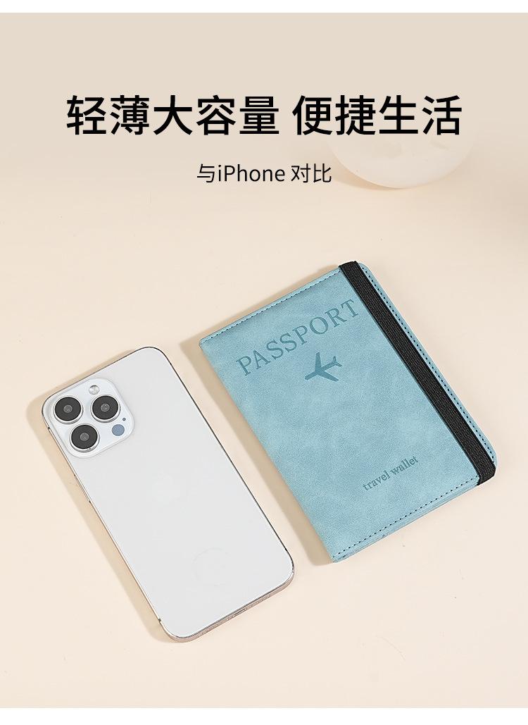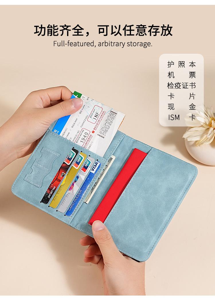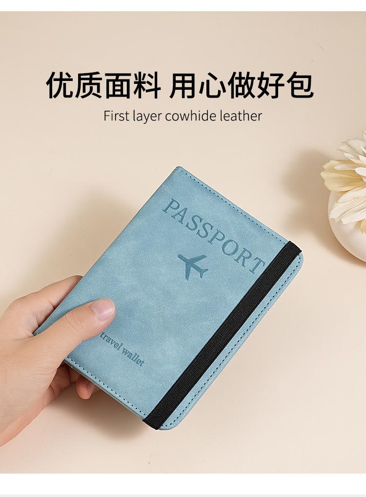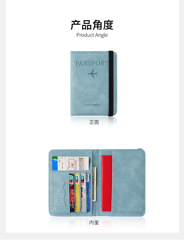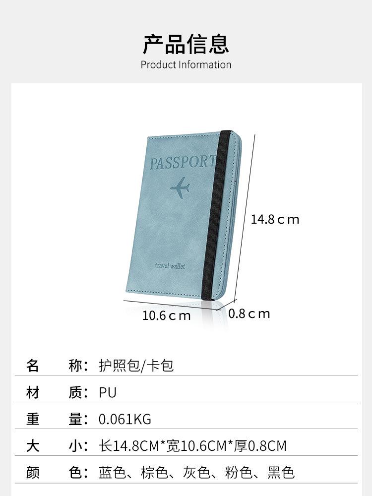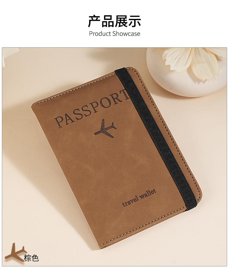 Estuche de cuero PU con diseño antirrobo RFID transfronterizo, bolso de identificación multifunción de moda simple, porta pasaporte de viaje.