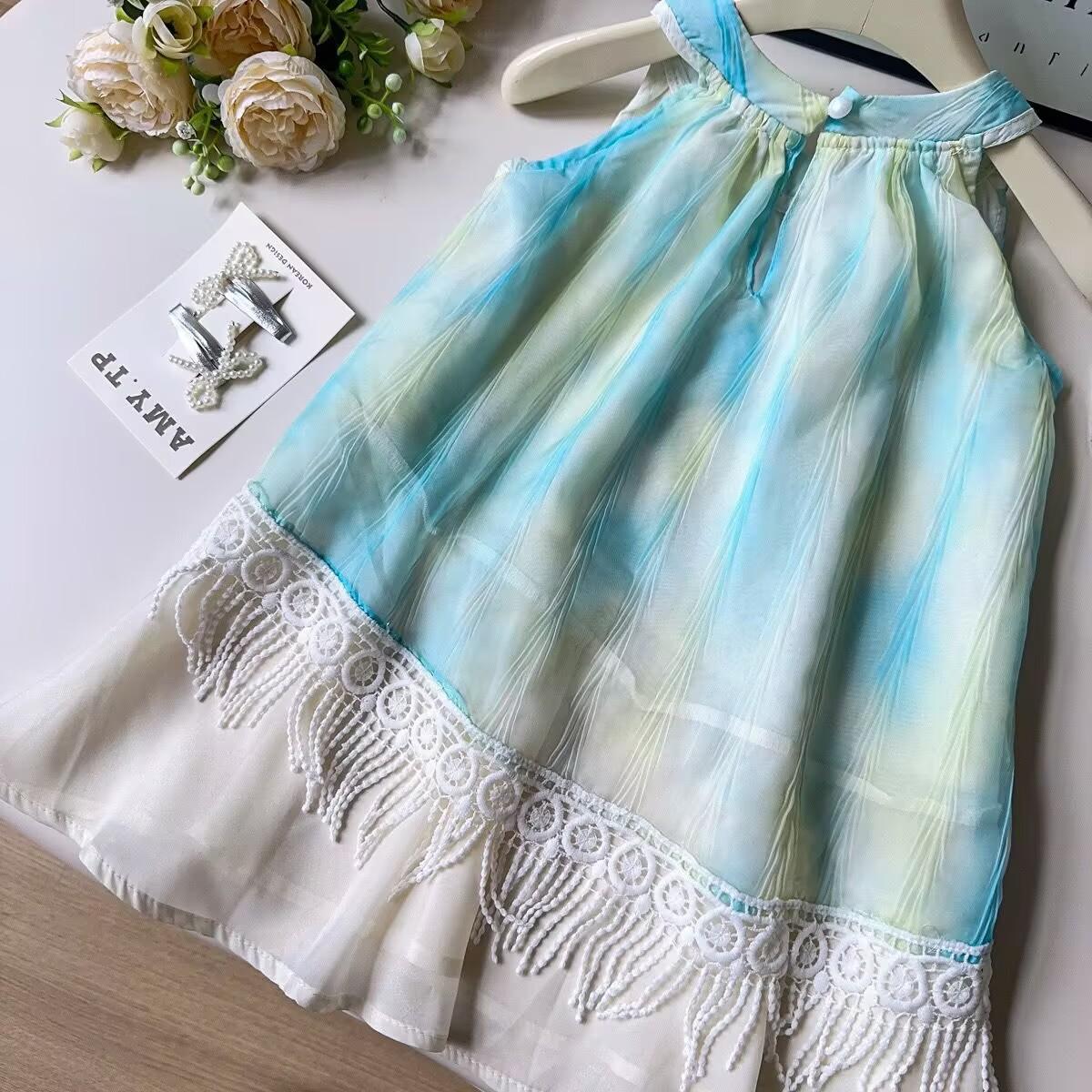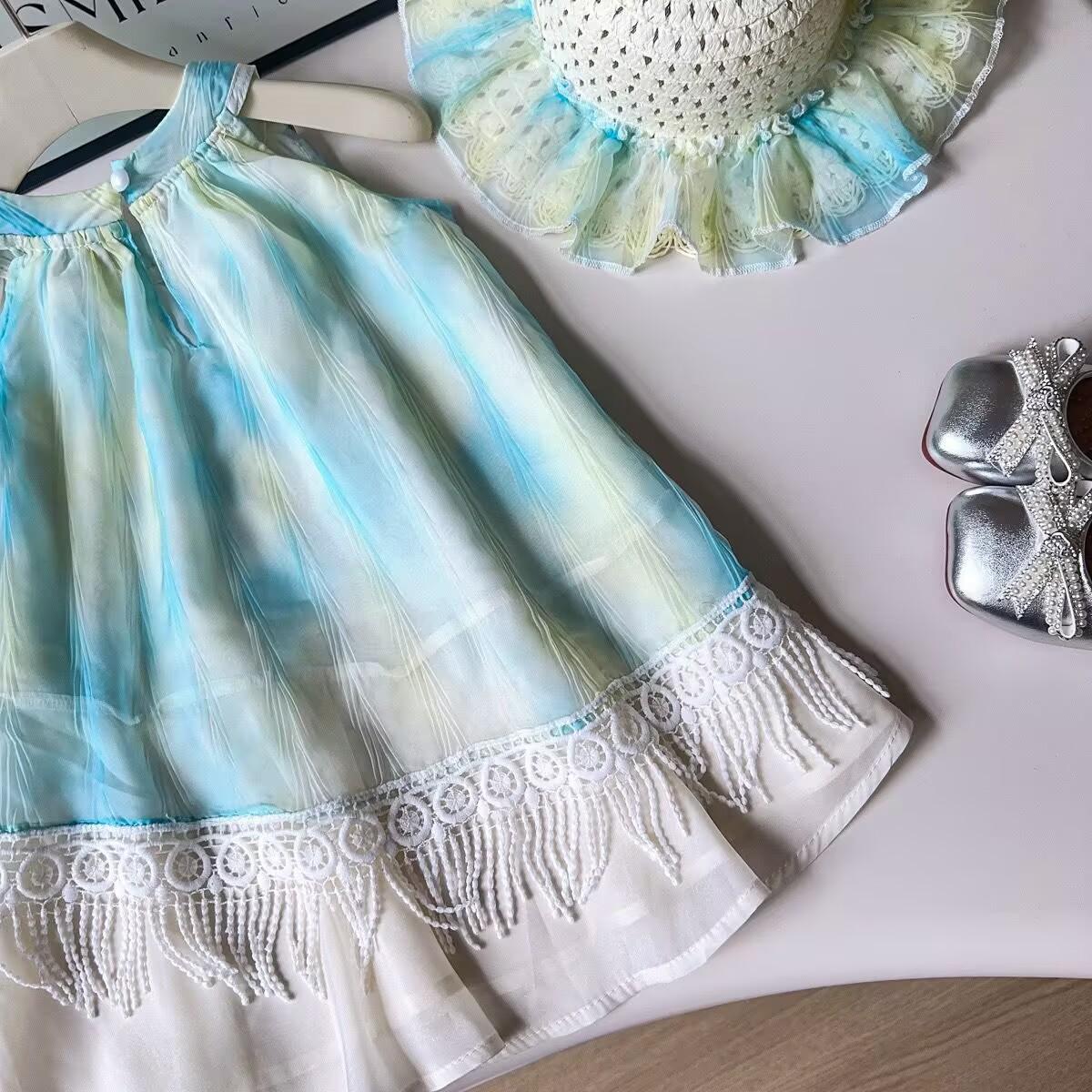 Vestido de niña 2025 Verano Nuevo Sin Mangas Borla Vestido de Vacaciones Vestido de Princesa para Niña