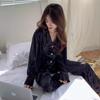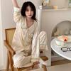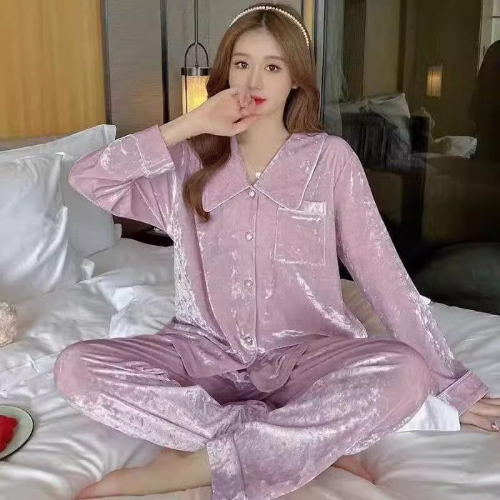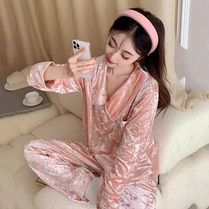 Pijamas de Otoño e Invierno 2024 para Mujer Pantalones Cálidos de Terciopelo Dorado Ropa de Casa para Mujer de Manga Larga Traje de Estilo Ins de Color Sólido