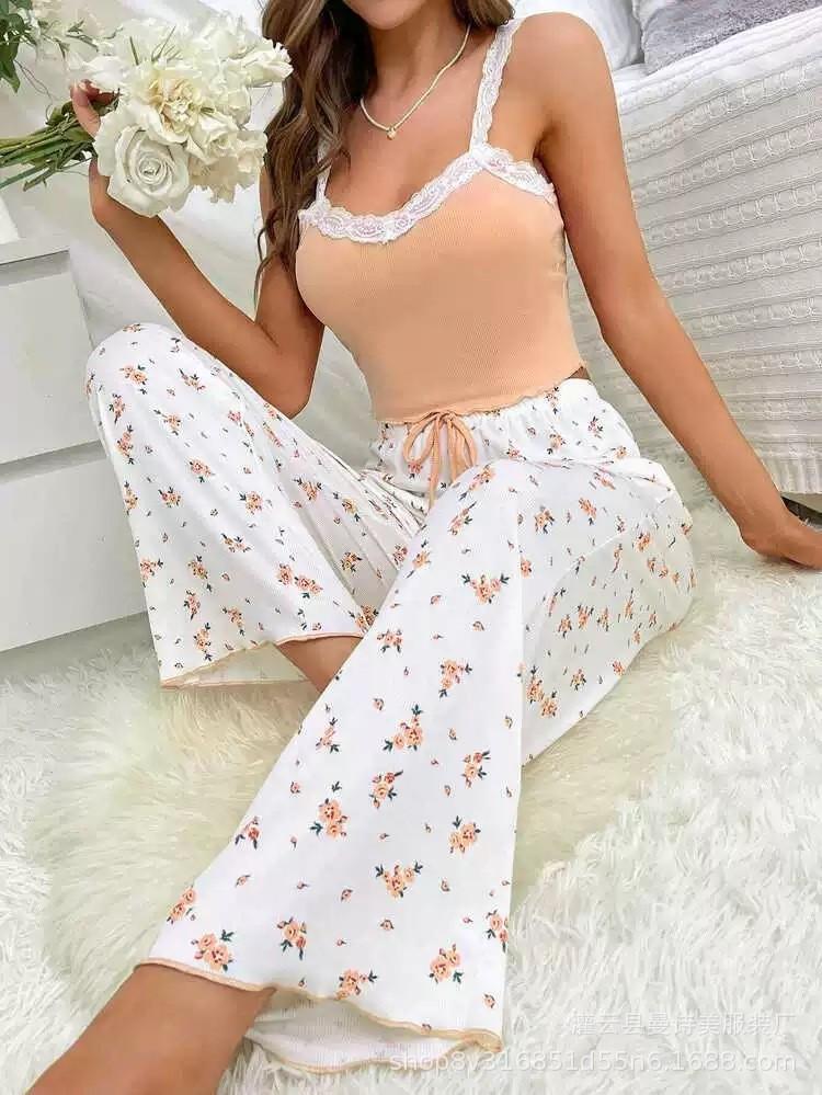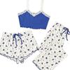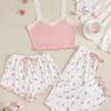 Pijama Floral Sexy Traje de Mujer Verano Tirantes Pantalones Cortos Lindo Ropa de Casa para Mujer Conjunto de Tres Piezas Niña