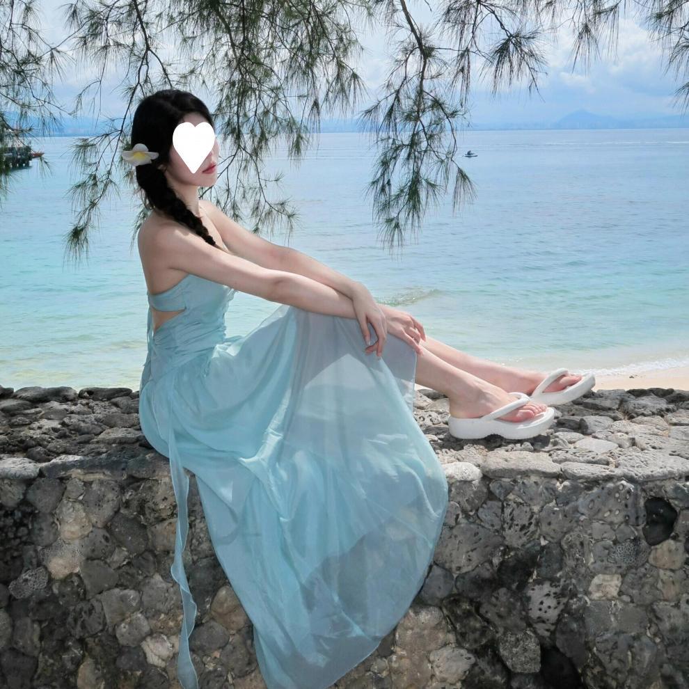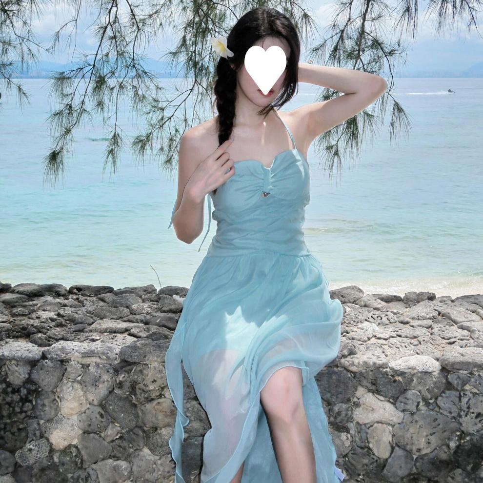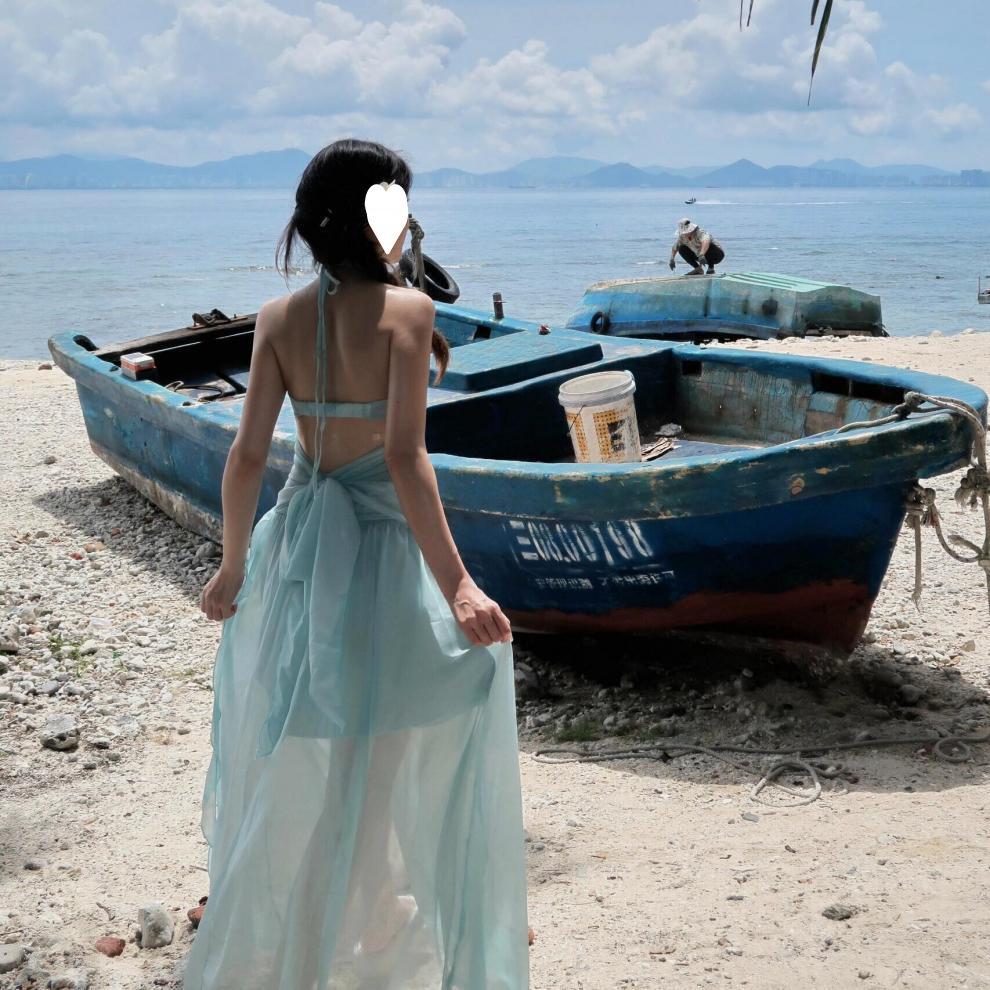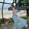 Falda Marina Fotografía Atmósfera Usando Elegante Vacación Sling Espalda Descubierta