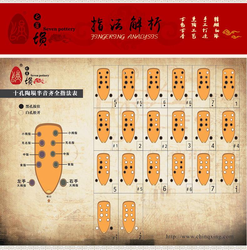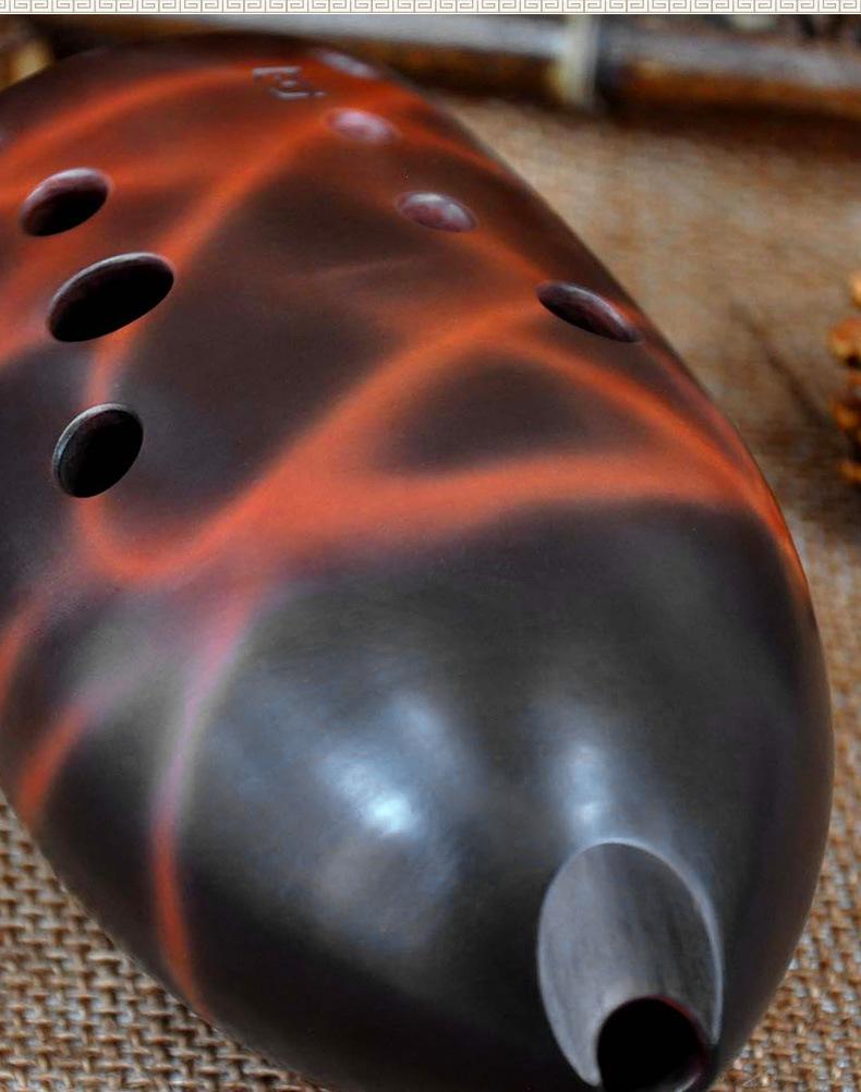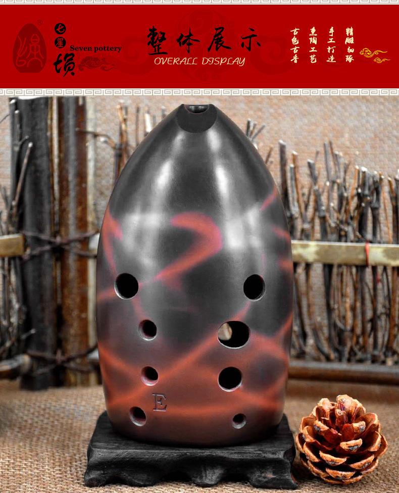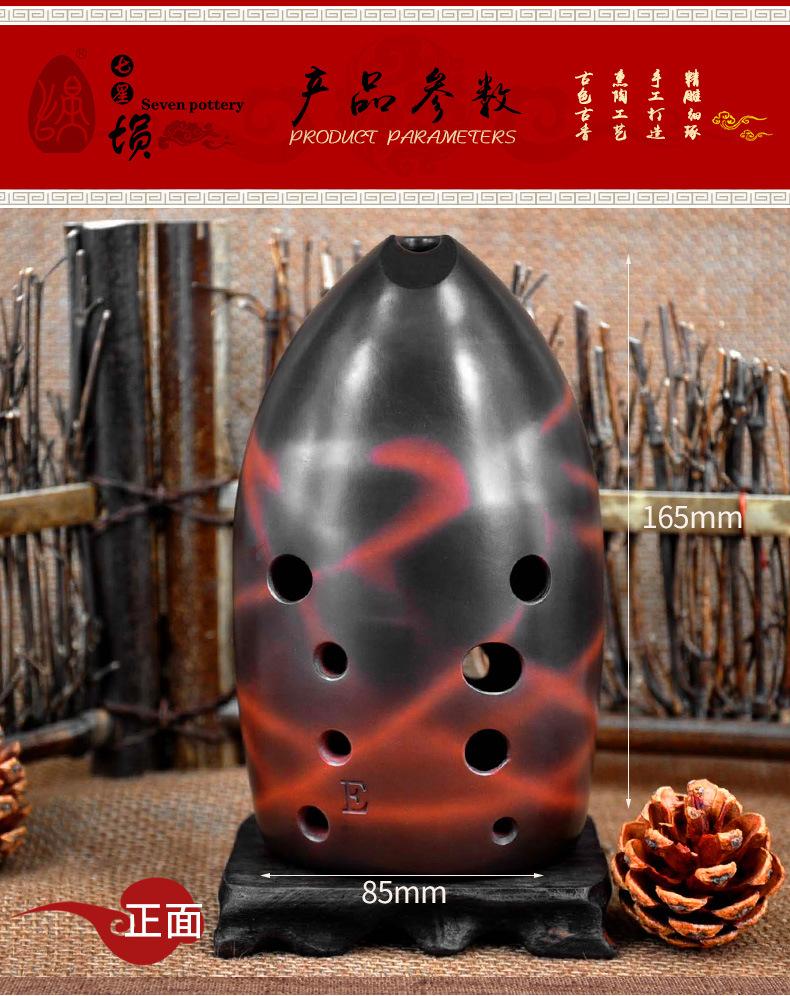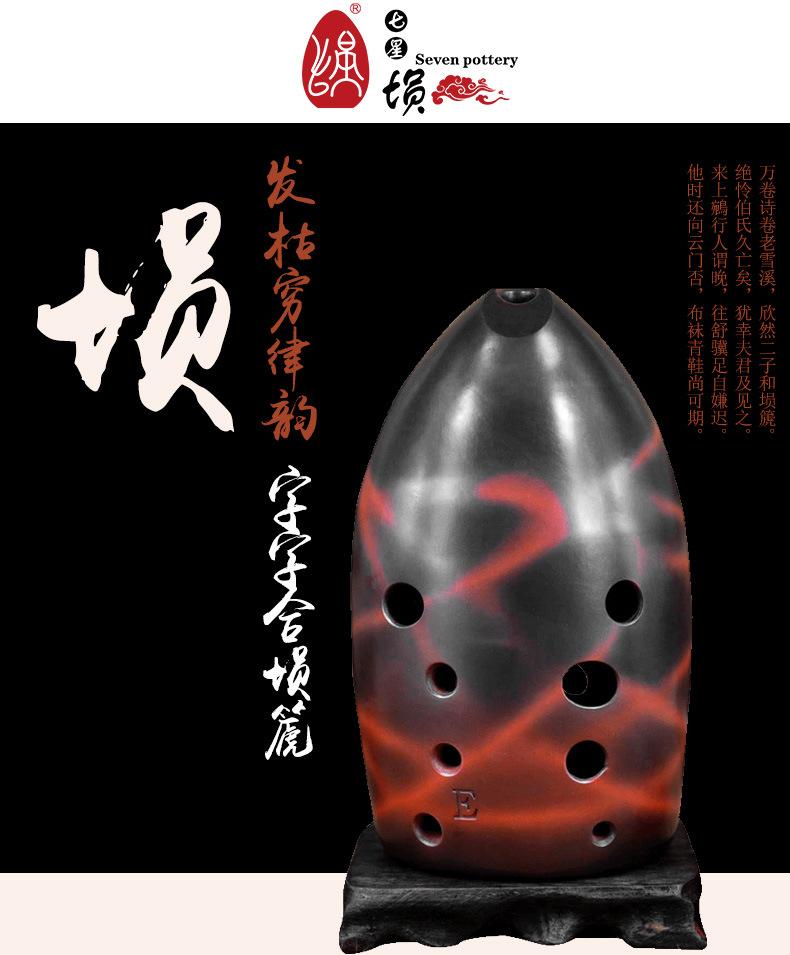 Siete Estrellas Cun Diez Agujeros Tao Cun Diez Agujeros Cerámica Roja Ahumado y Quemado Plano Cun Principiantes Adultos Principiantes Profesional Tocando Instrumentos Musicales Nacionales