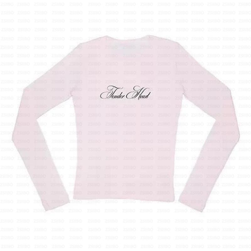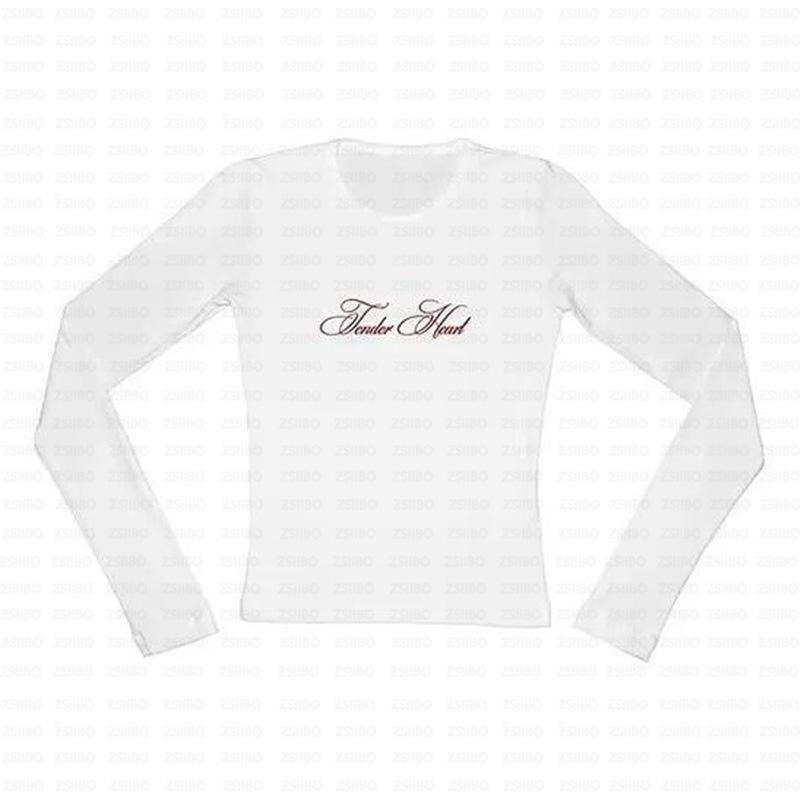 Sencilla y Hermosa Elegante Estampado de Letras Casual Moda Harajuku Y2K Calle Ropa Exterior Top Cuello Redondo Manga Larga Camiseta de Mujer