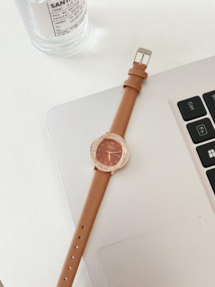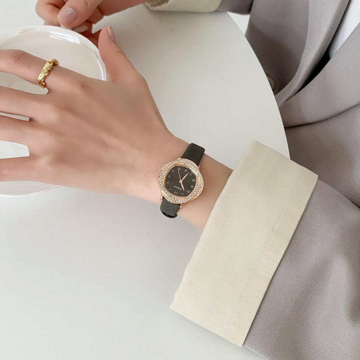 Reloj de Mujer con Estrellas y Diamantes Esfera Pequeña Correa Simple Lujo Ligero Elegante Nicho Retro Reloj de Mujer de Alta Gama