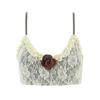 Ins Sexy Slim Estéreo Flor Bottoming Top sin Mangas para Mujer Dulce Tirantes Espagueti Encaje Camisola