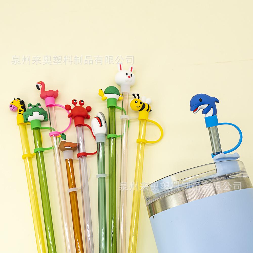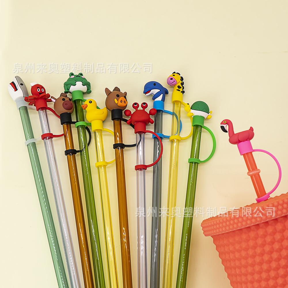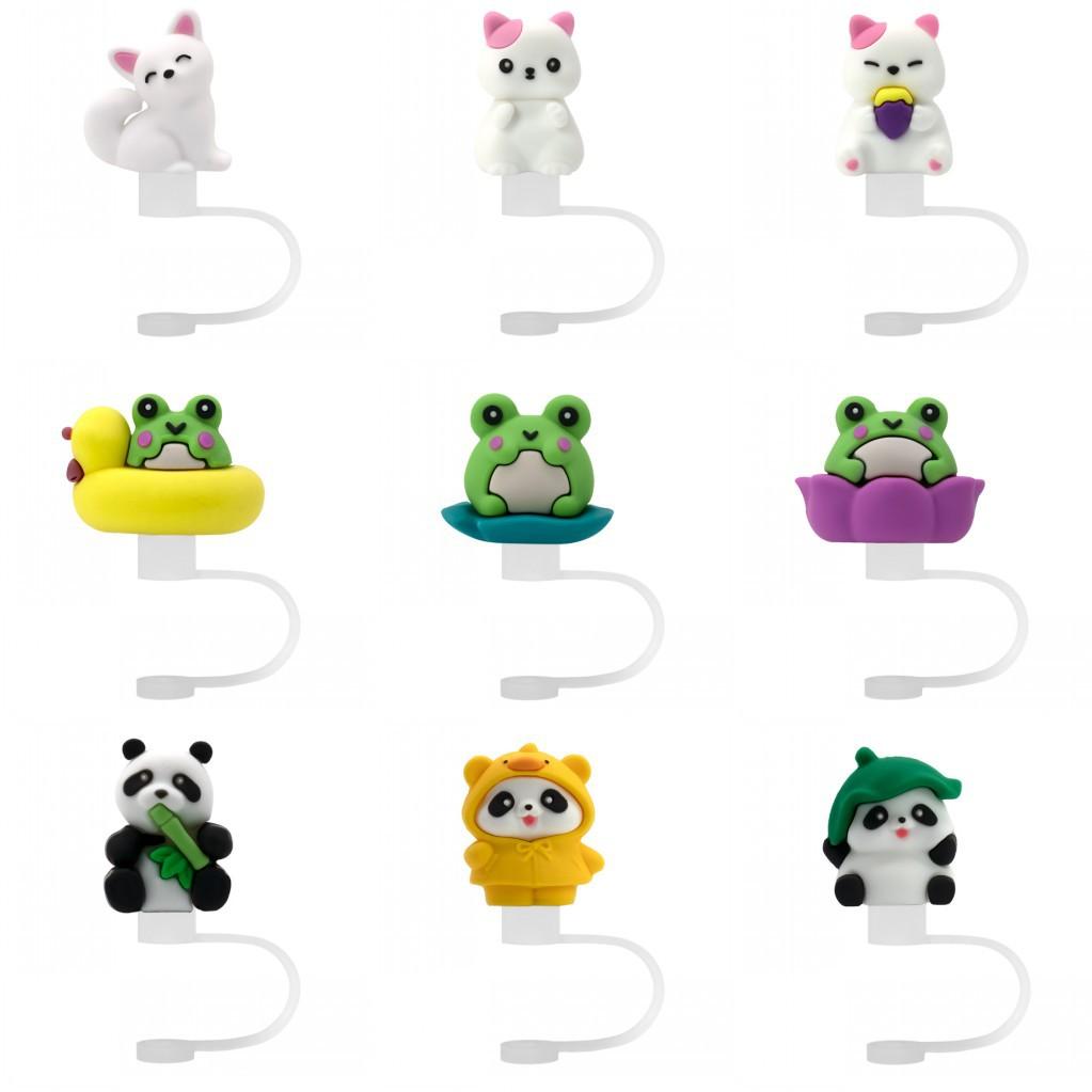 Ventas Calientes Transfronterizas Cubierta Antipolvo de Paja 3D Animal de Dibujos Animados Taza de Té con Leche Cubierta de Paja Accesorios de Tapa de Paja de Silicona Estéreo
