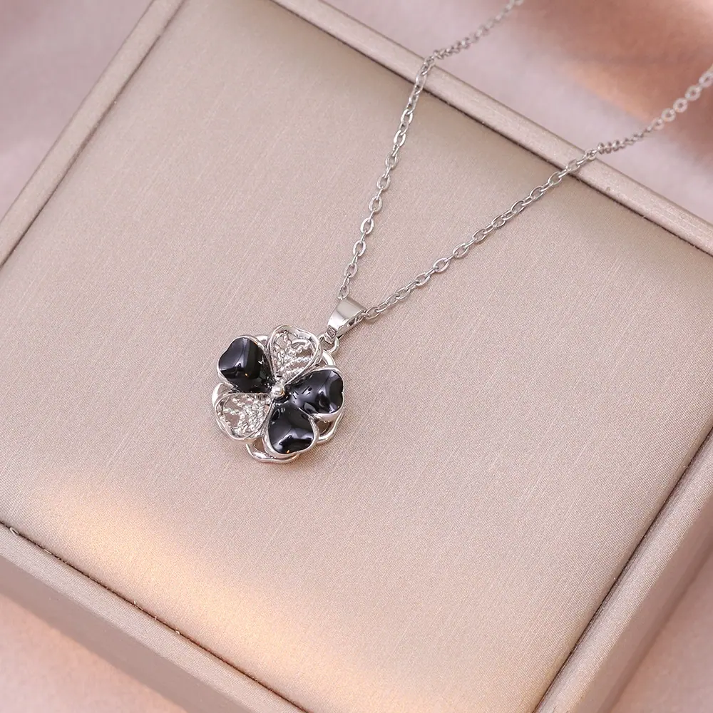 Collar femenino de Internet Celebrity con colgante de flor de circón giratorio y nicho transfronterizo de nuevo diseño con sentido del temperamento, collar de acero de titanio.