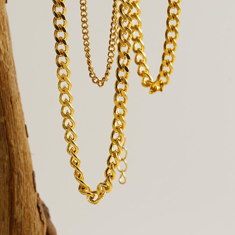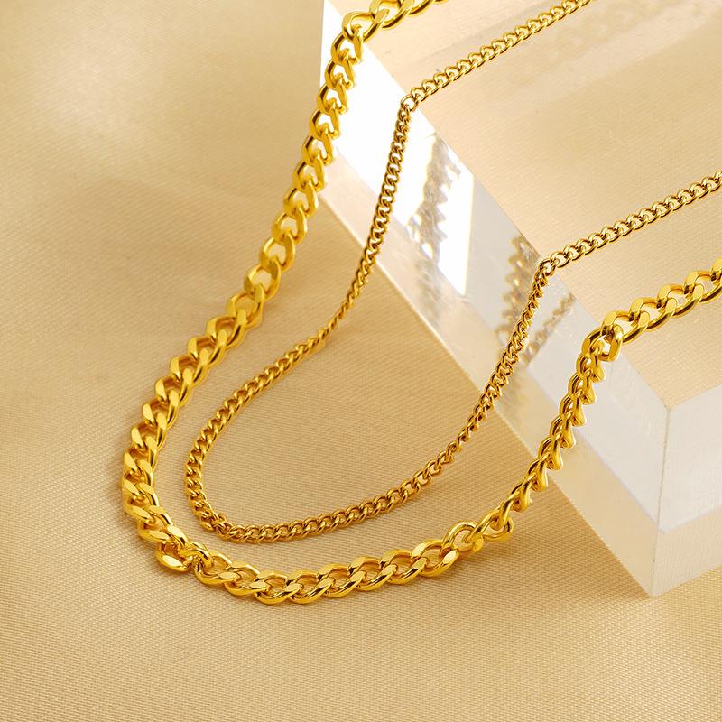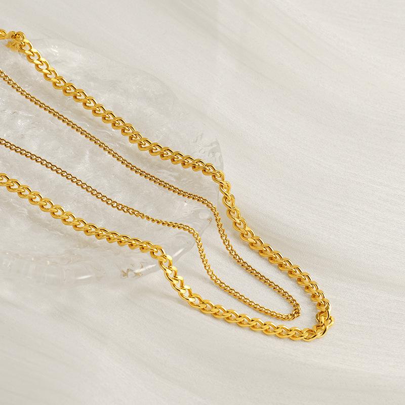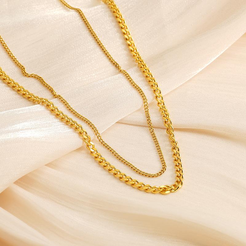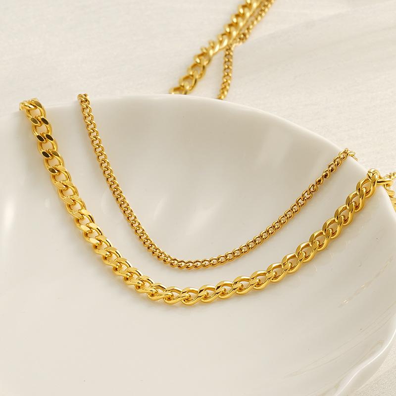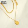 Explosiones Europeas y Americanas Acero Inoxidable de Alta Calidad Chapado en Oro Cadena Doble Capa Diseño Simple de Moda Estilo Nicho Collar de Acero Titanio