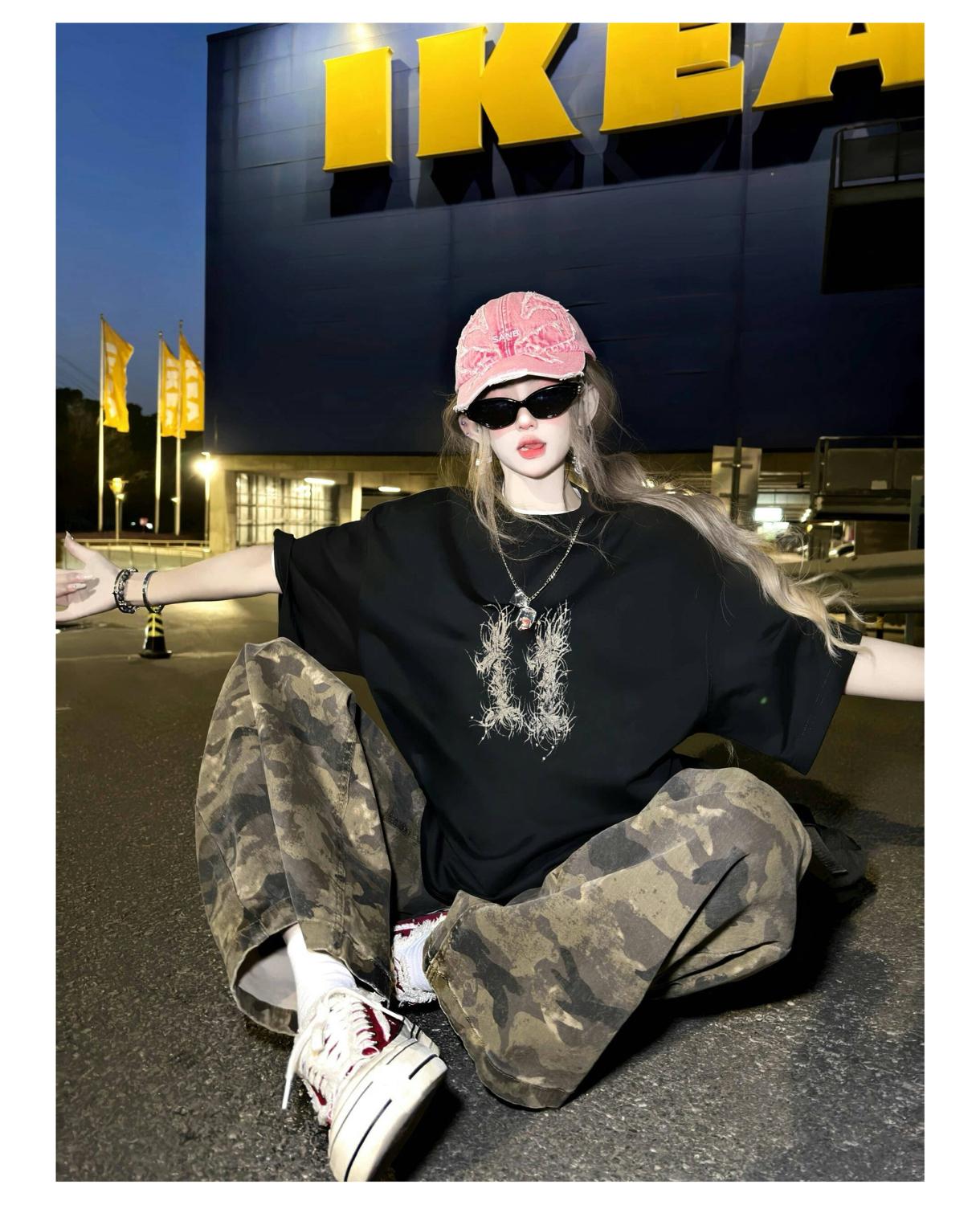 WE11DONE TRACK Marca de Nicho Trendy Casual Americano Pareja Suelto Algodón para Hombre Manga Corta Camiseta de Manga Corta para Verano