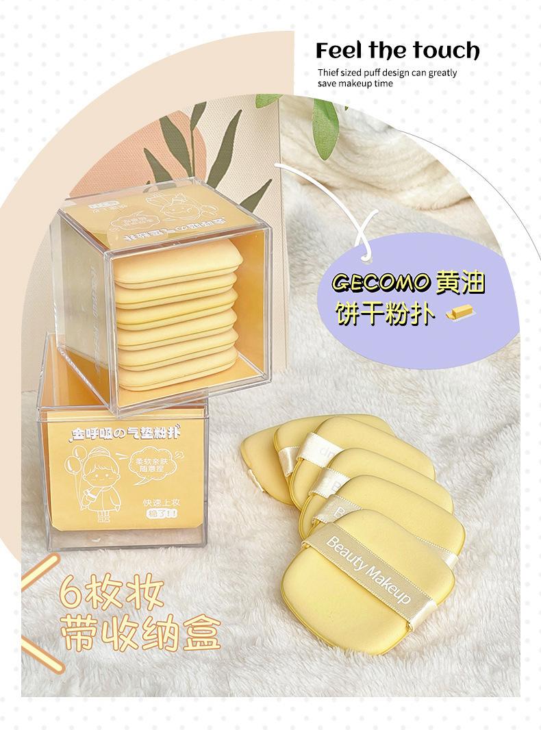 Puff de polvo de cojín de aire de galleta de mantequilla no come polvo esponja de maquillaje de doble uso seco y húmedo huevo de maquillaje de belleza de doble cara disponible 6 estudiantes