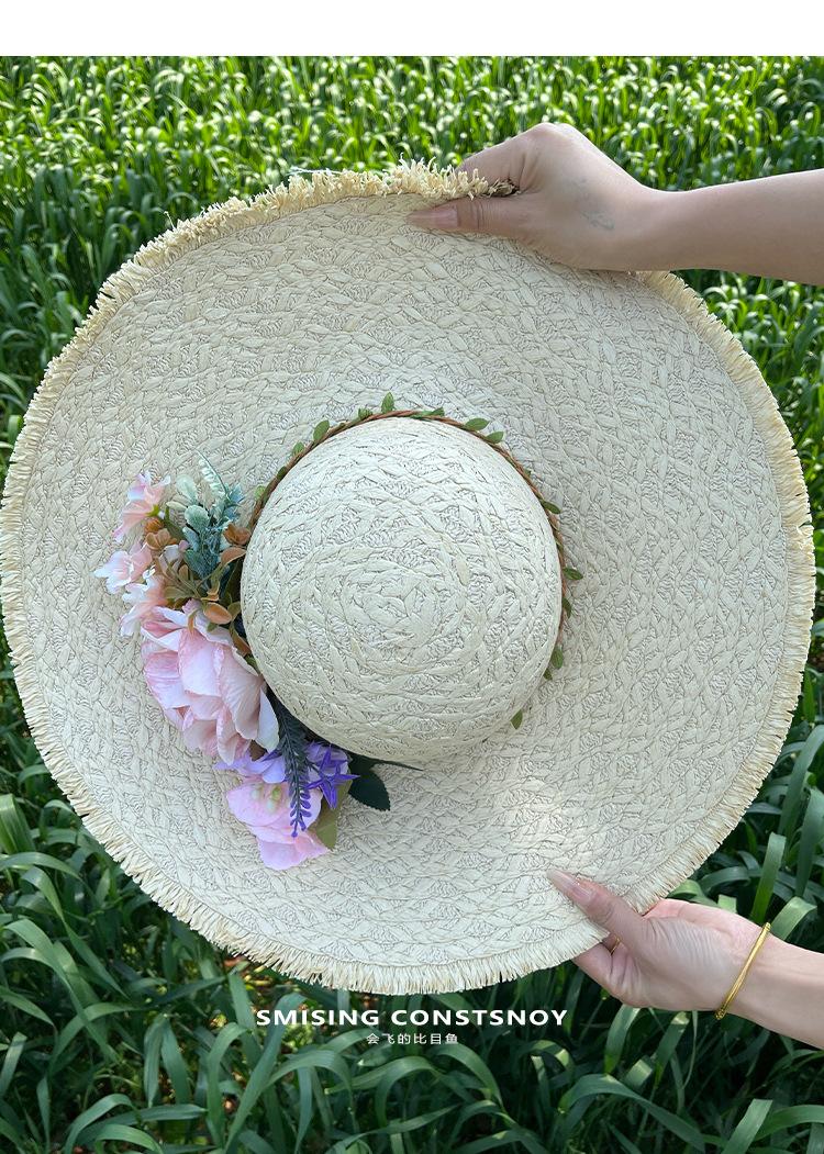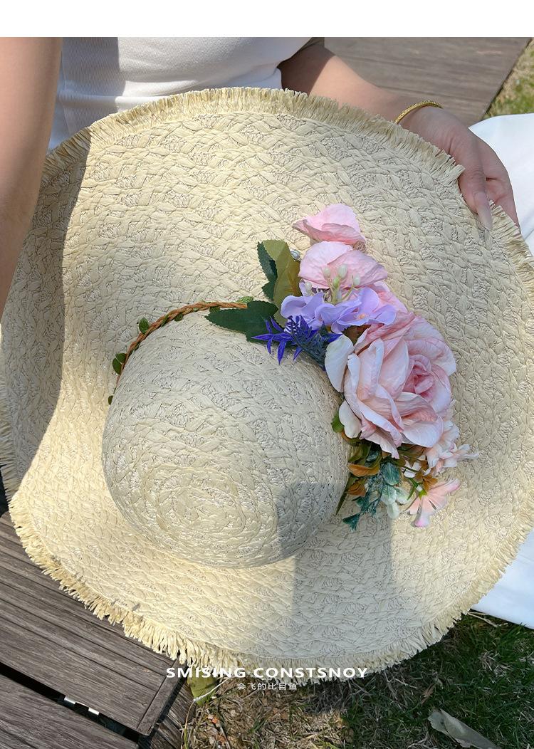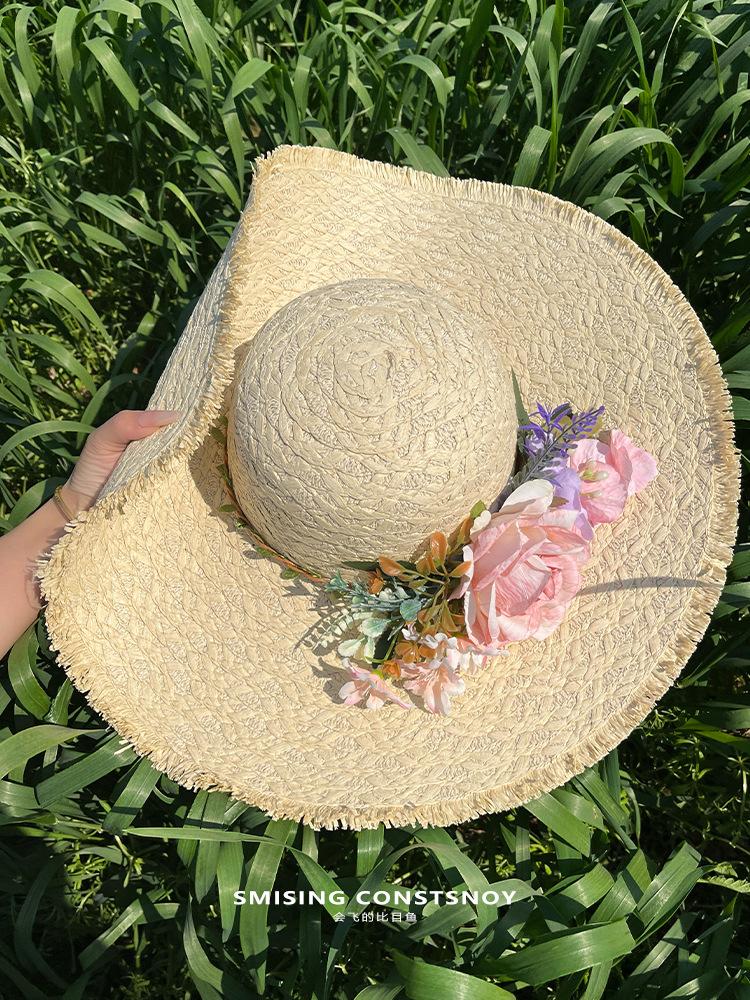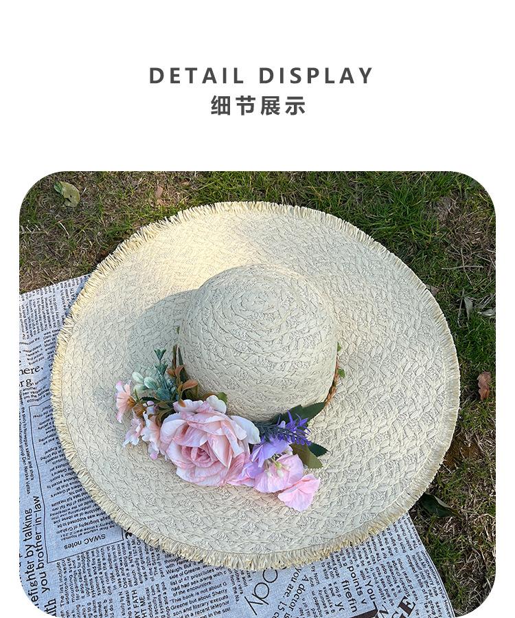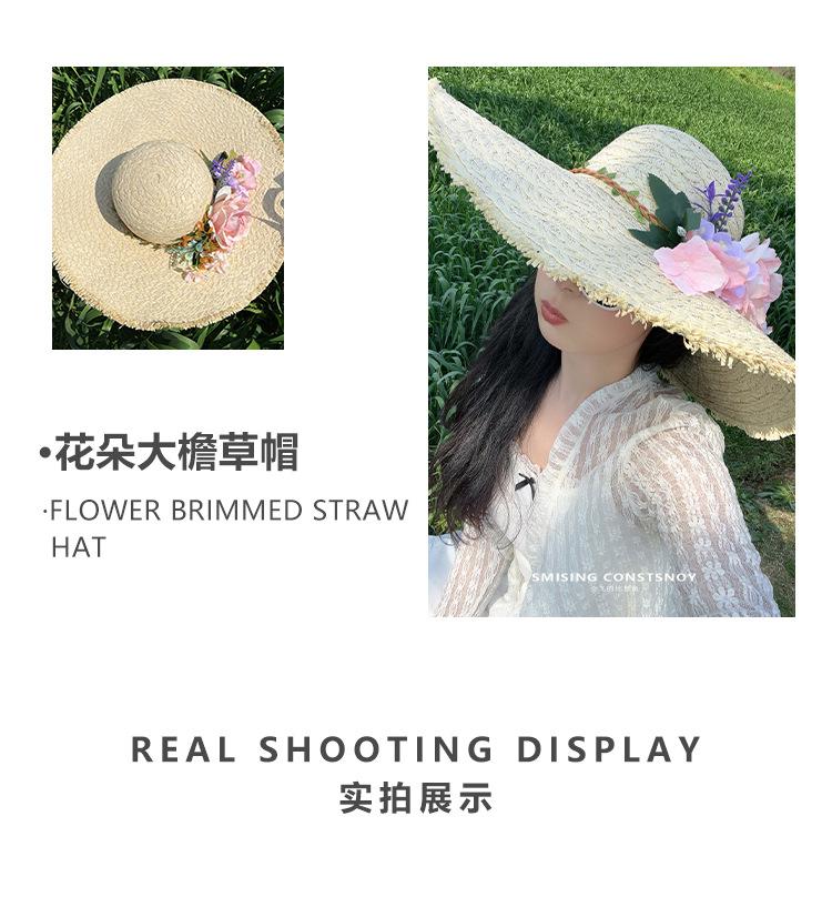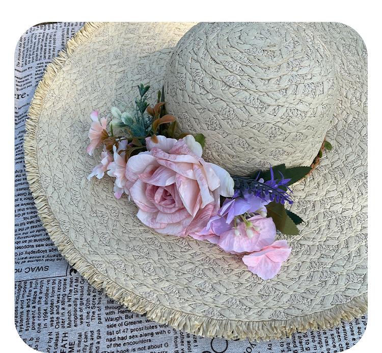 2025 nuevo sombrero de paja de rafia con flores estilo francés para mujer, sombrero de sol para playa de verano