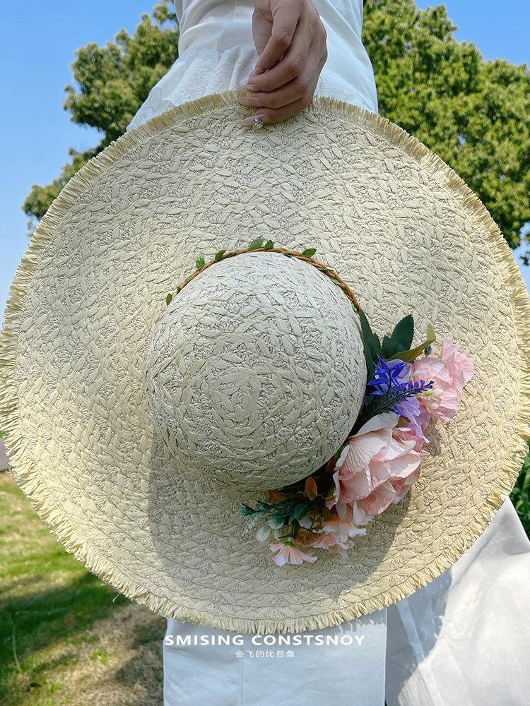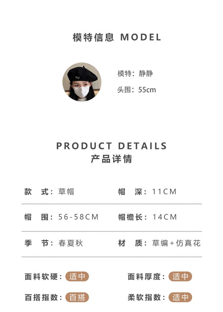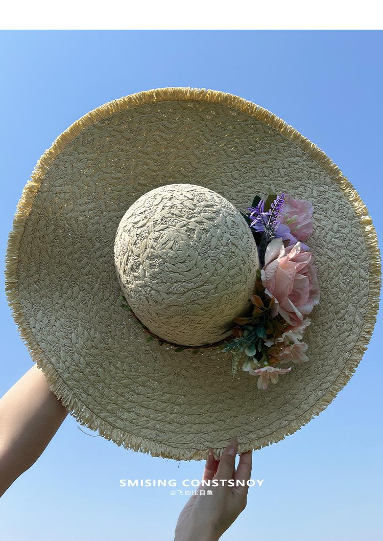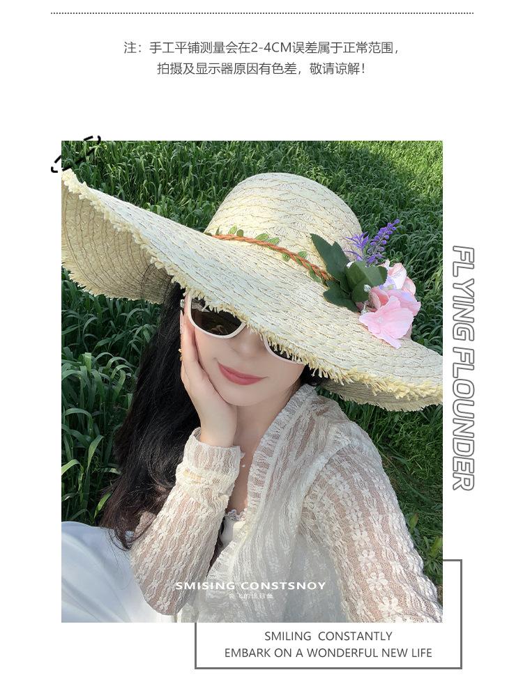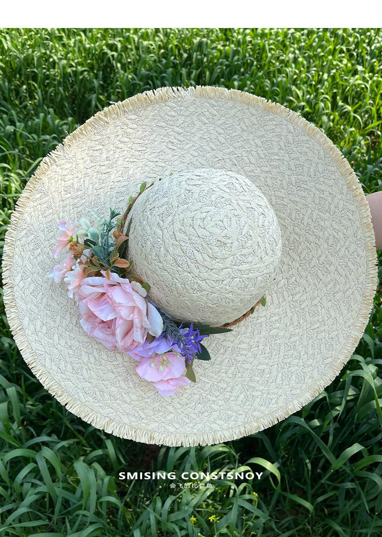 2025 nuevo sombrero de paja de rafia con flores estilo francés para mujer, sombrero de sol para playa de verano
