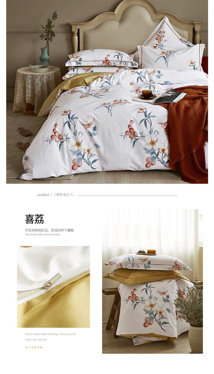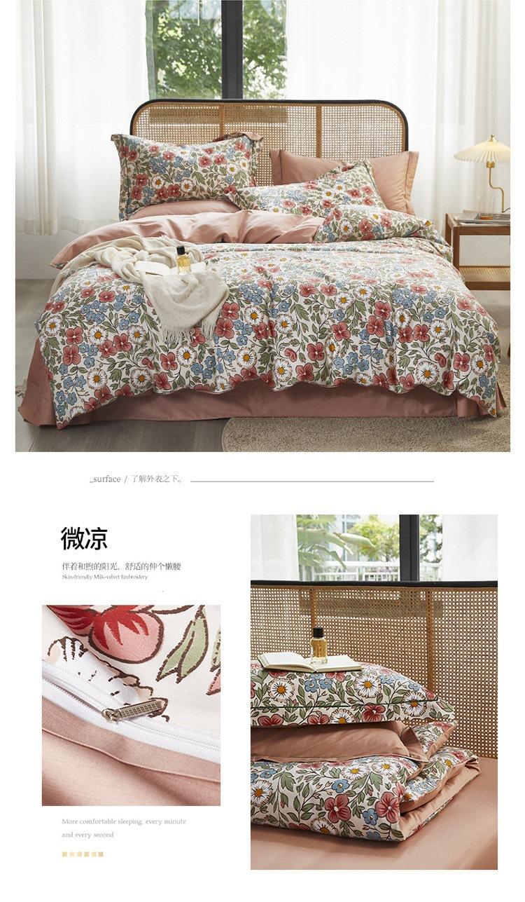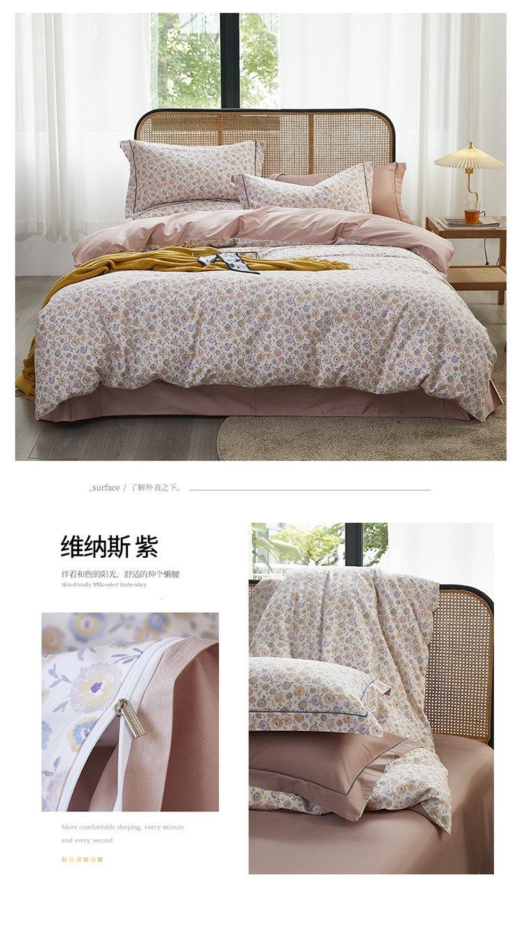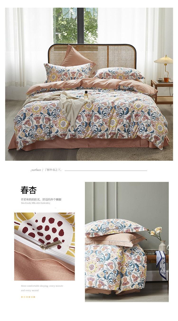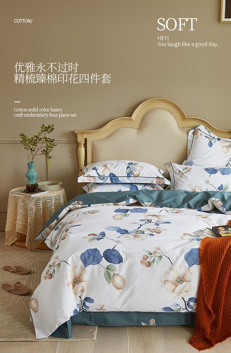 2025 Nuevo Algodón Platino Algodón Peinado Estampado Algodón Juego de Cuatro Piezas Funda de Edredón Encogible