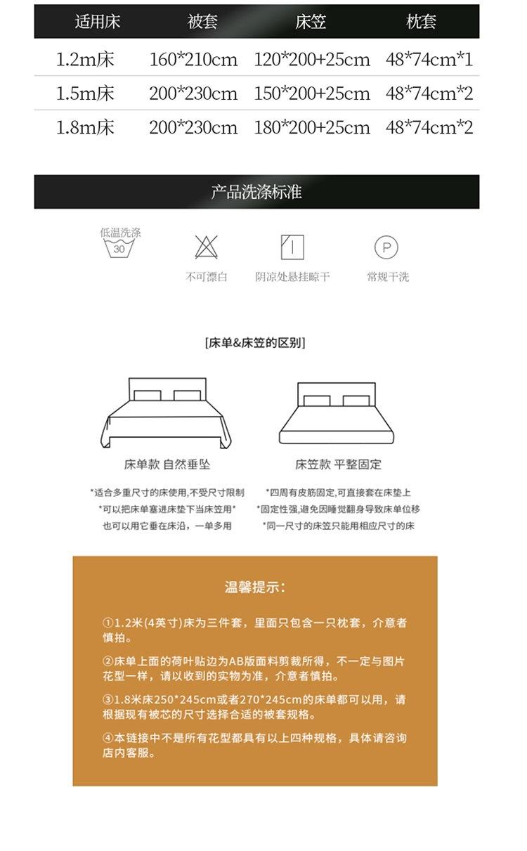 1.2m bed sheet three-piece set, 1.5m bed sheet four-piece set, 1.8m bed sheet four-piece set, 2.0m bed sheet f...