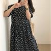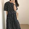 Compra Vestido floral de verano 2025 retro holgado adelgazante negro cuello redondo manga corta vestido para mujer al por mayor en Joom.pro