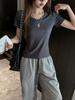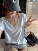 Camiseta blanca de manga corta con escote en V y hombros descubiertos para mujer, verano 2025, nueva camiseta holgada de color liso, top Spice Girl
