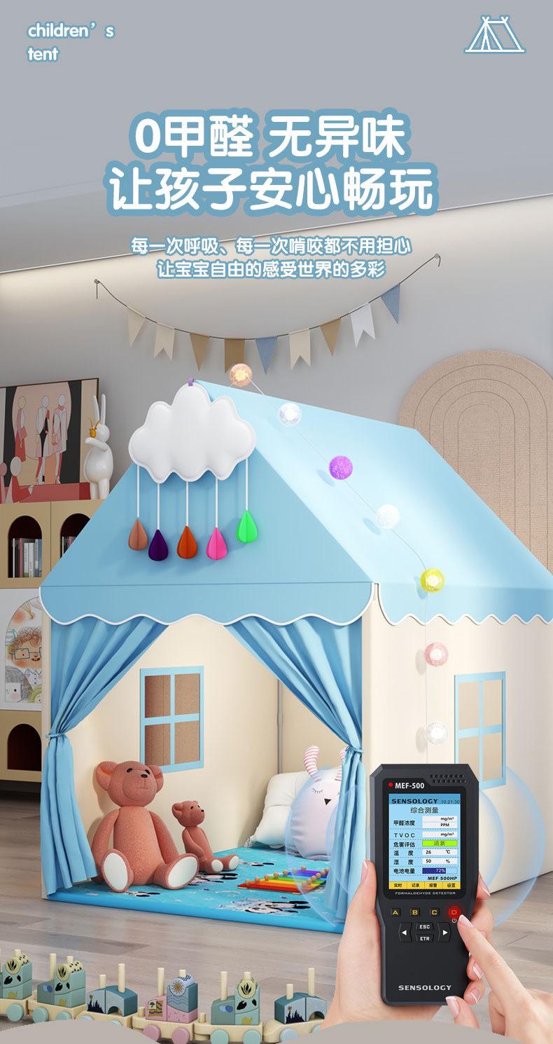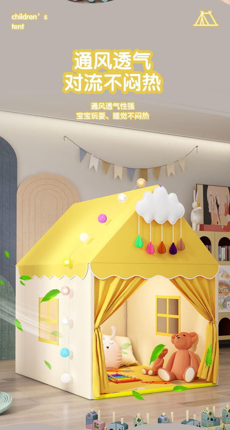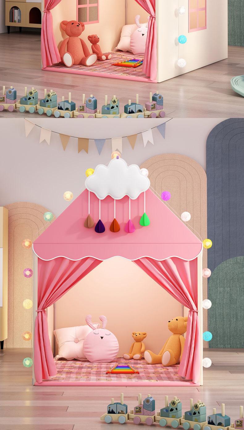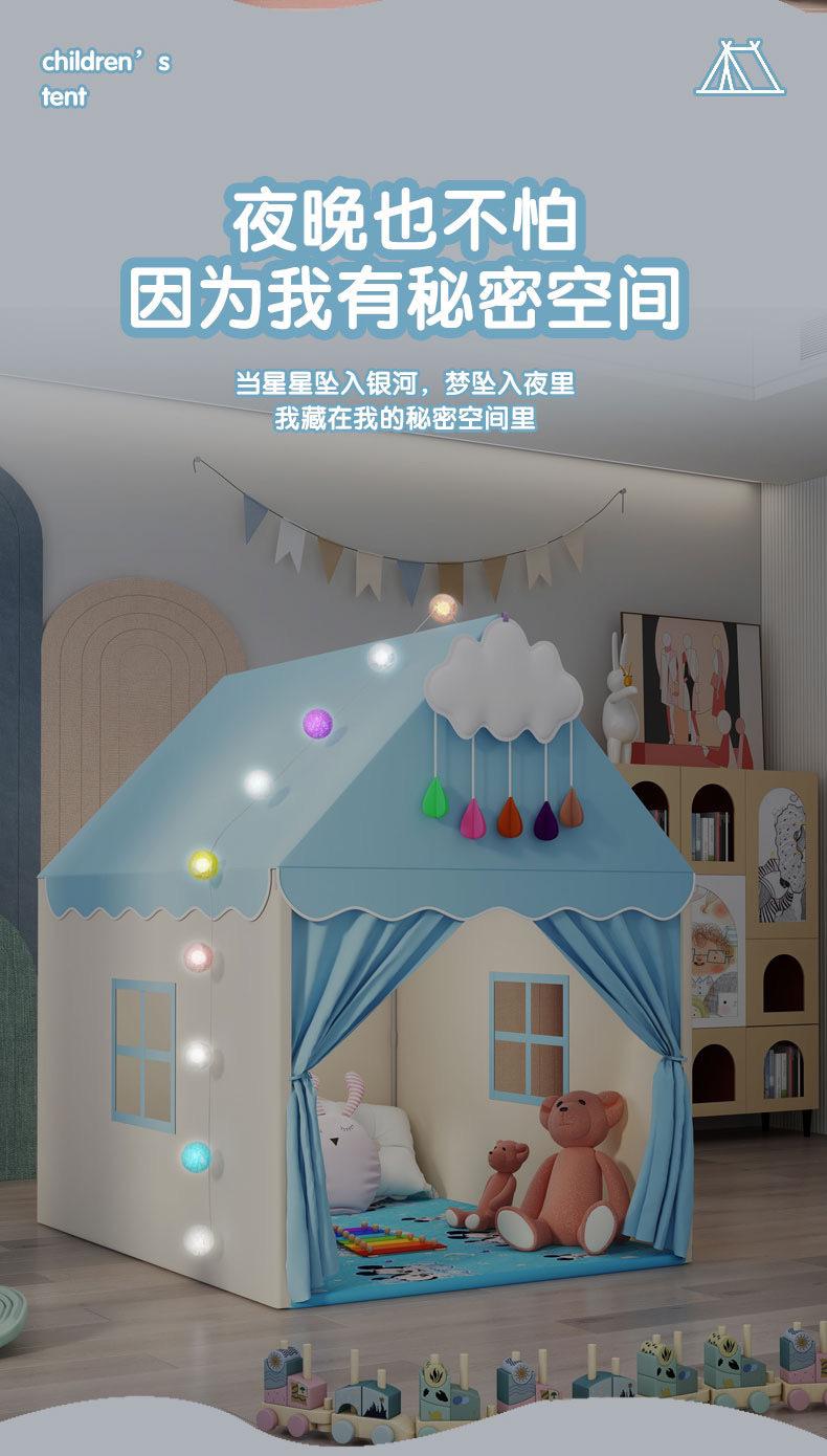 Tent + crawling mat + cotton ball lamp + clouds + colorful flags