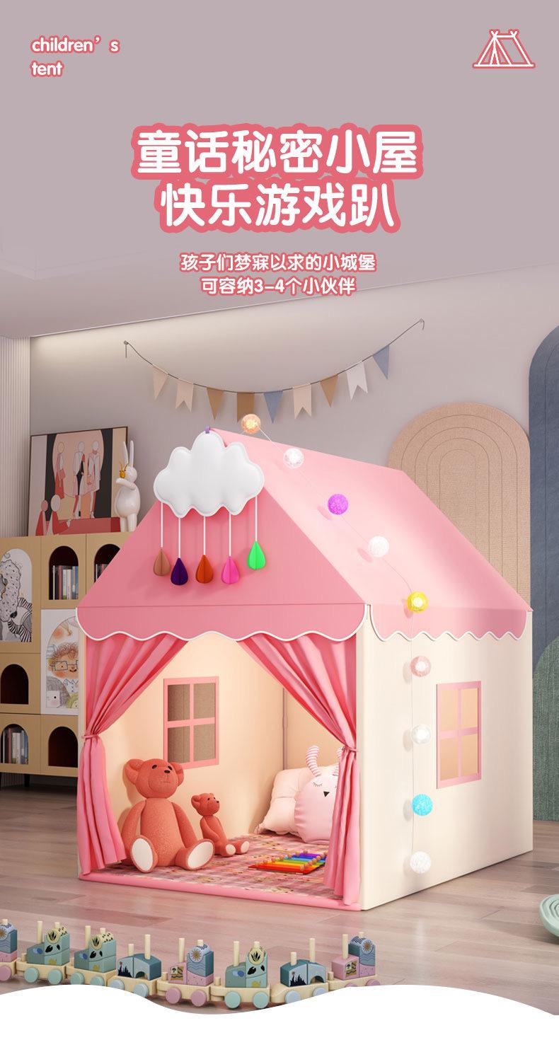 Tienda Infantil Casa de Juegos Interior Tela de Algodón Varilla de Metal Casa Pequeña Castillo Casa de Princesas Casa de Juegos para Dormir Juguetes
