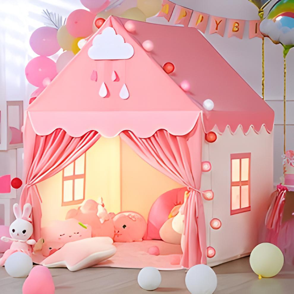 Small tent pink, Tent + star lights, Tent + star lights + colorful flags + butterflies, Tent + cotton ball lam...