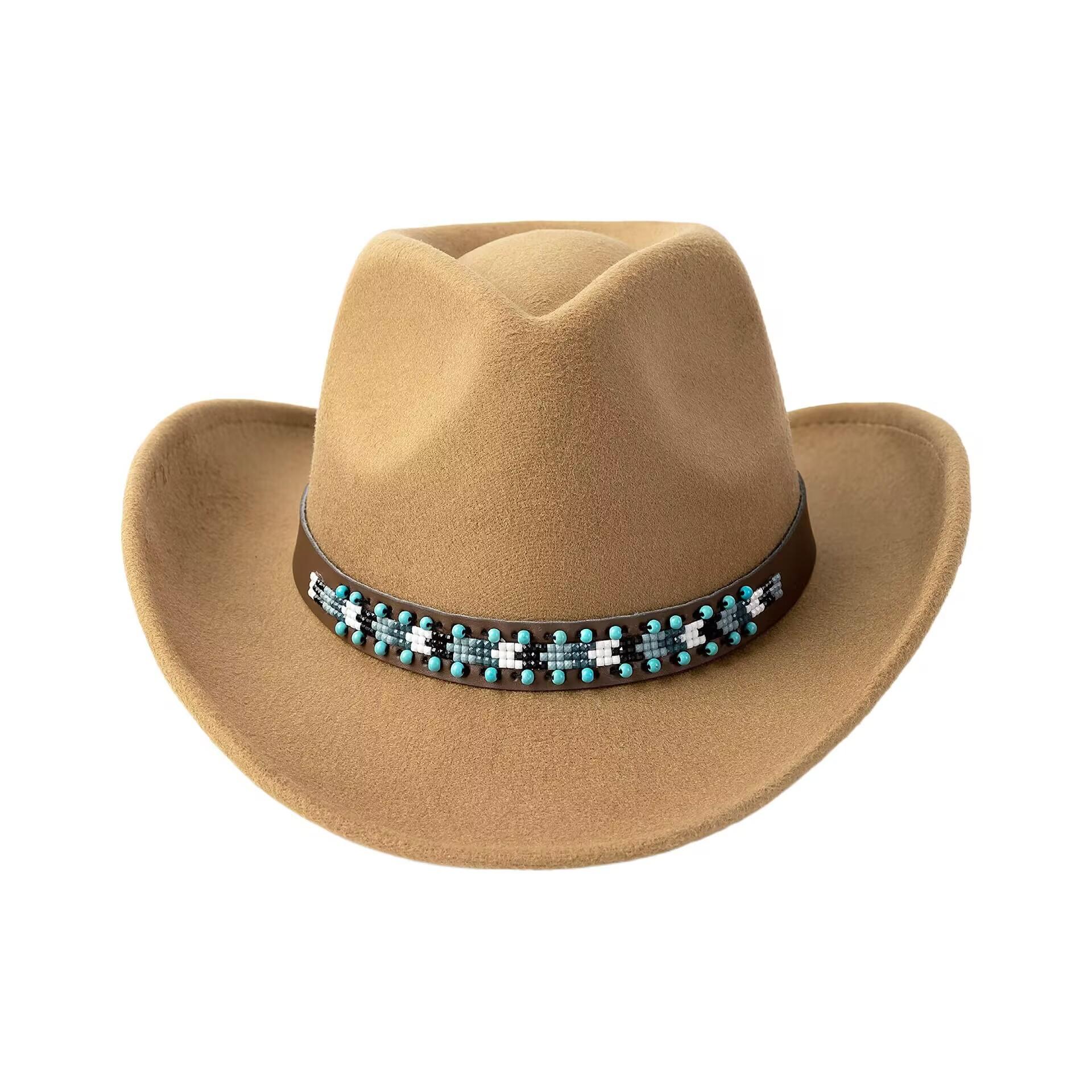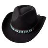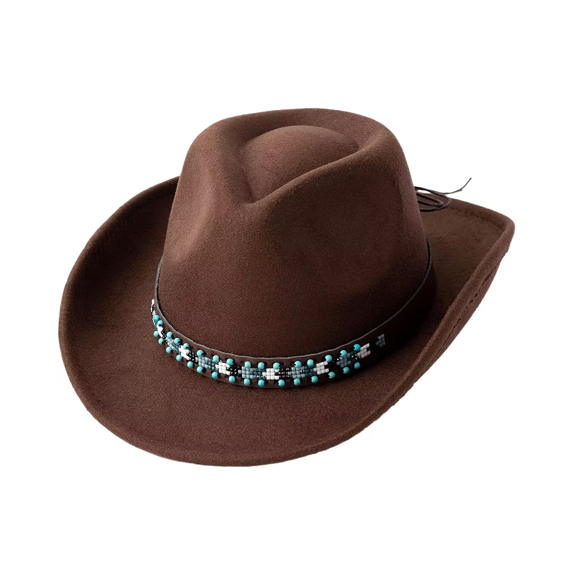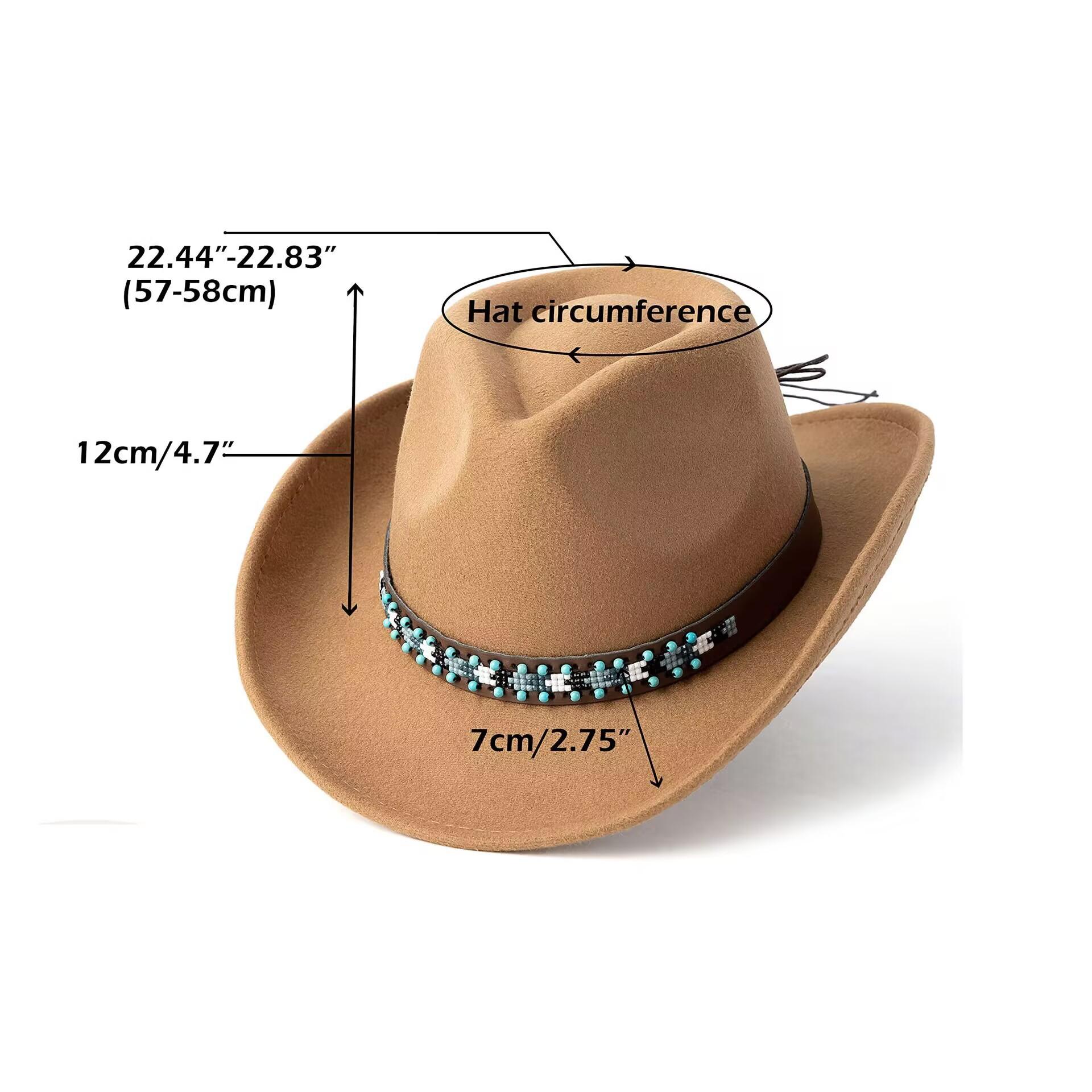 Amazon Explosiones Transfronterizas Sombrero de Vaquero Occidental para Hombre y Mujer Moda Retro Cinturón con Cuentas Ala Grande Sombrero de Jazz Sombrero de Lana