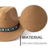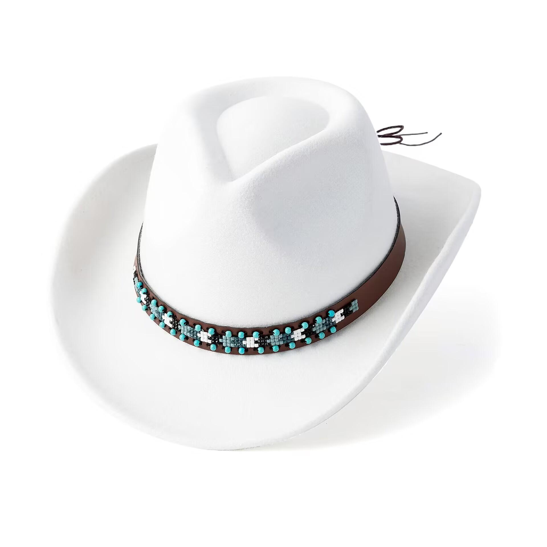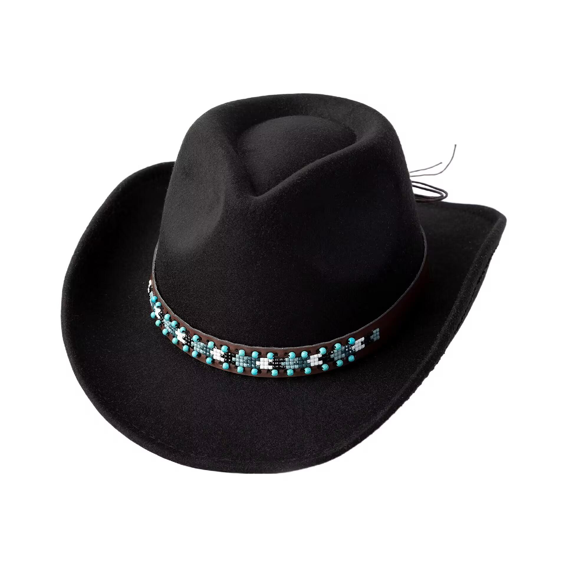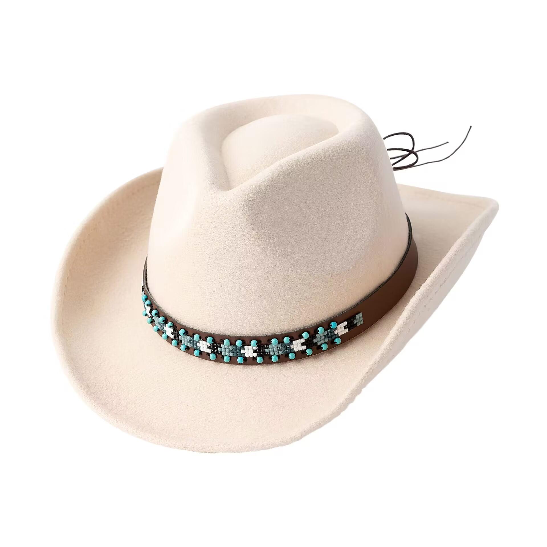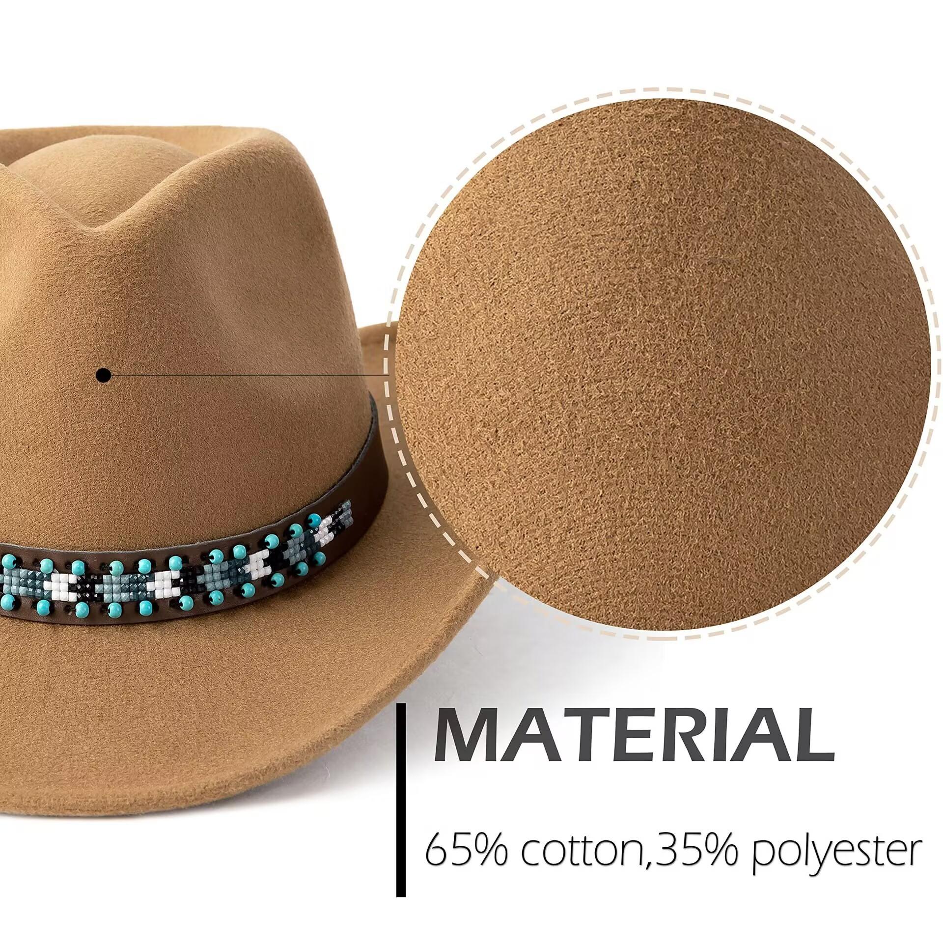 Amazon Explosiones Transfronterizas Sombrero de Vaquero Occidental para Hombre y Mujer Moda Retro Cinturón con Cuentas Ala Grande Sombrero de Jazz Sombrero de Lana