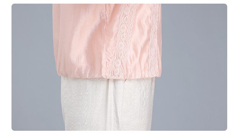 Wl1613 blue-single top, Wl1613 pink-single top, Wl1613 pink top + beige cotton and linen pants, Wl1613 blue to...