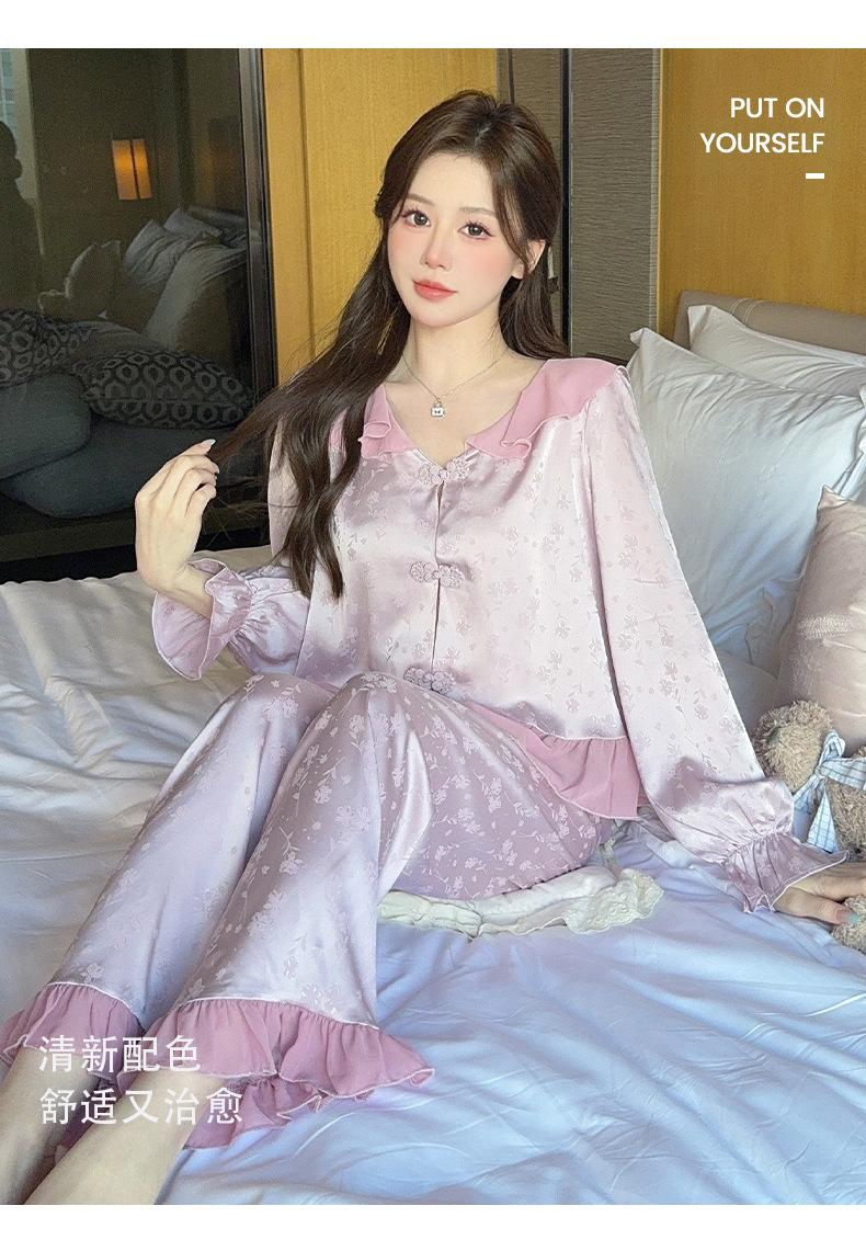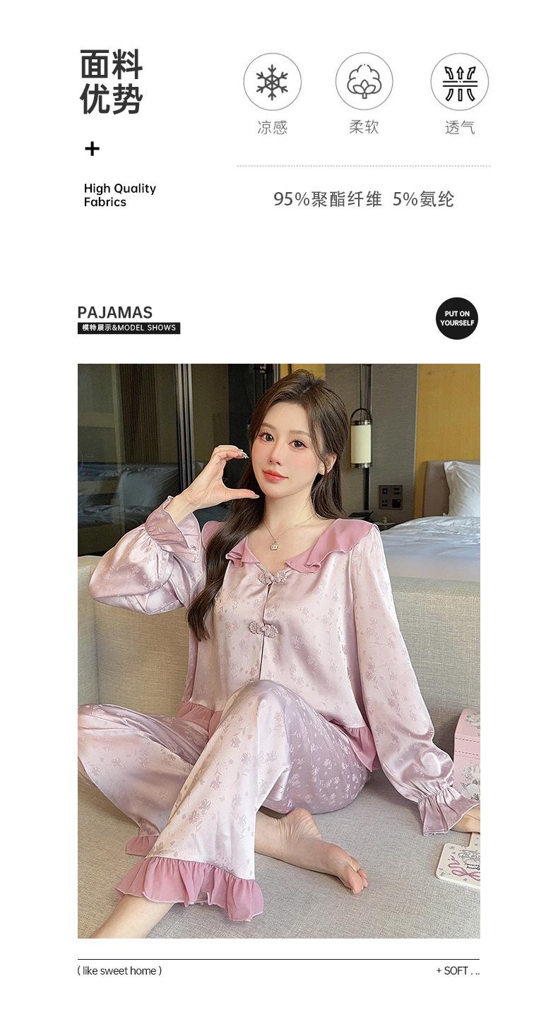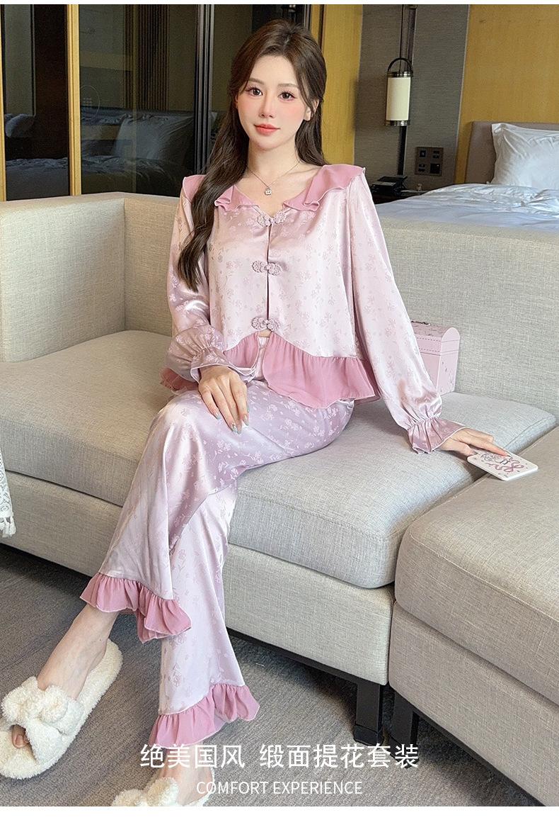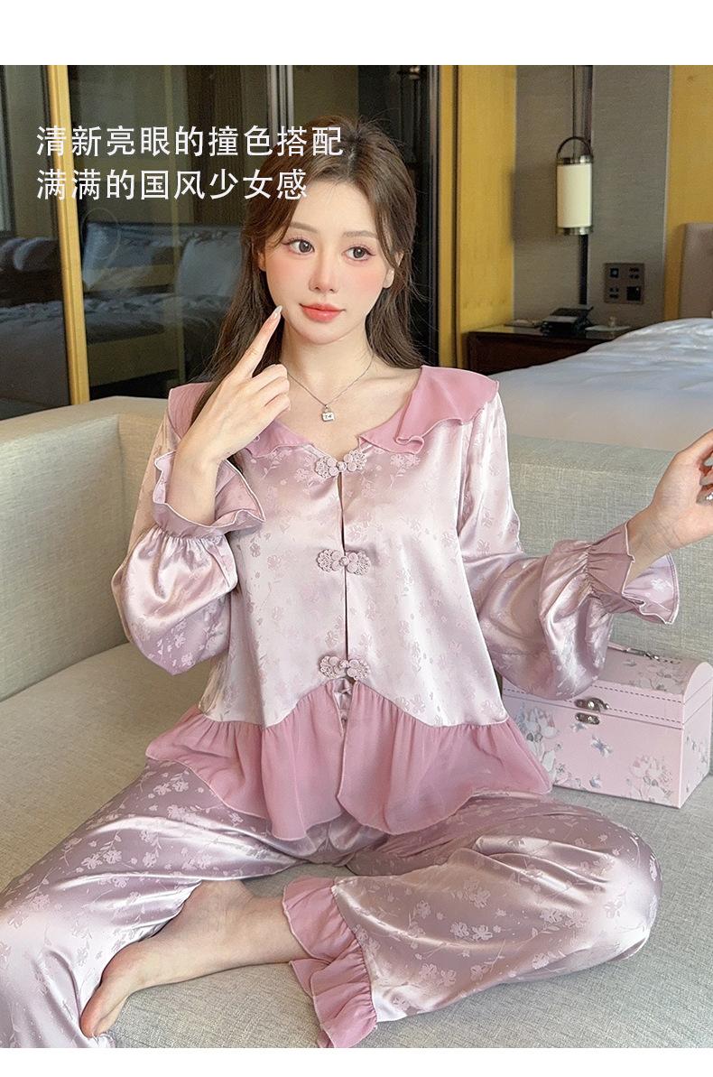 Pijama chino de otoño de dos piezas, de manga larga, suelto, de seda helada, jacquard, de alta gama, estilo retro, para el hogar.