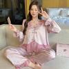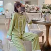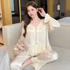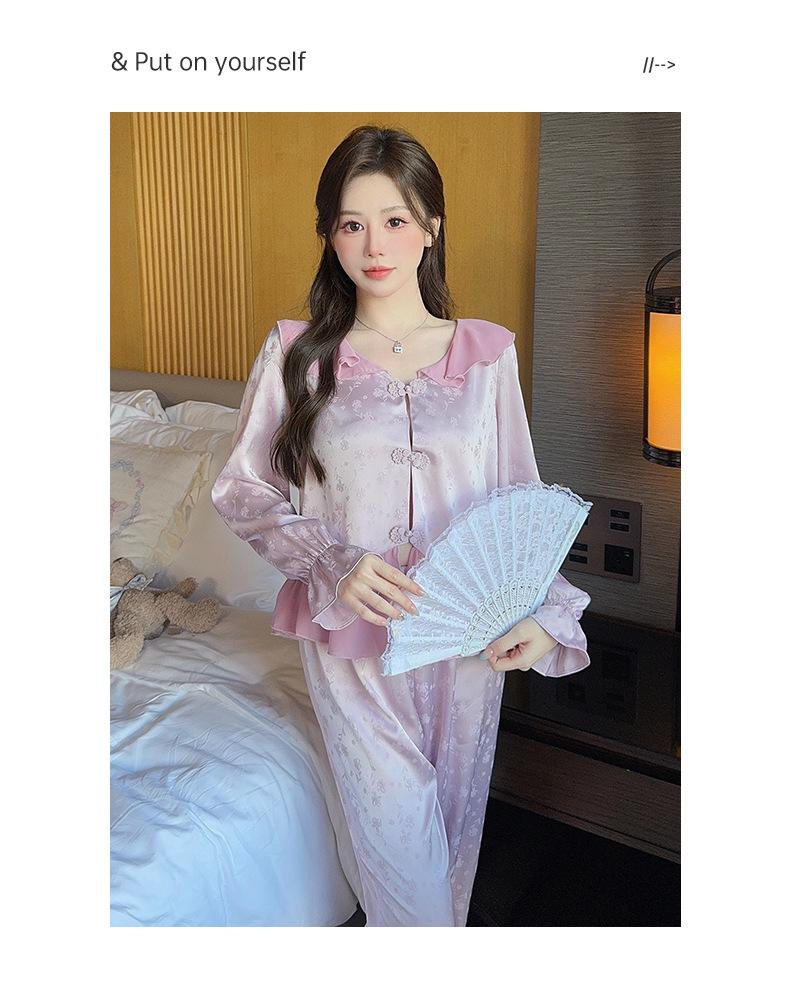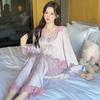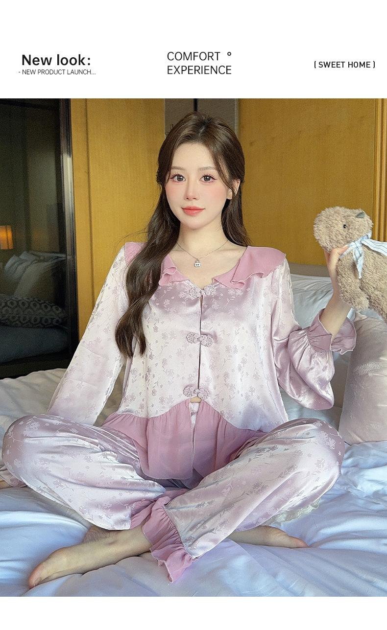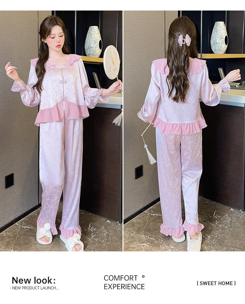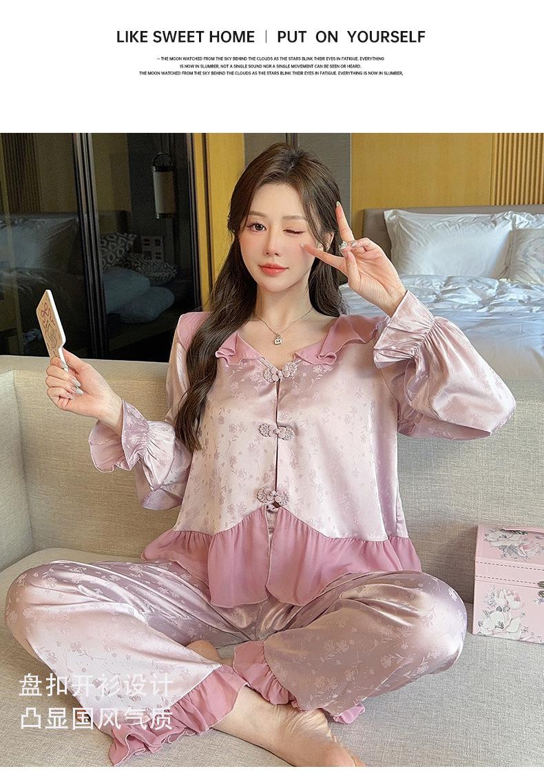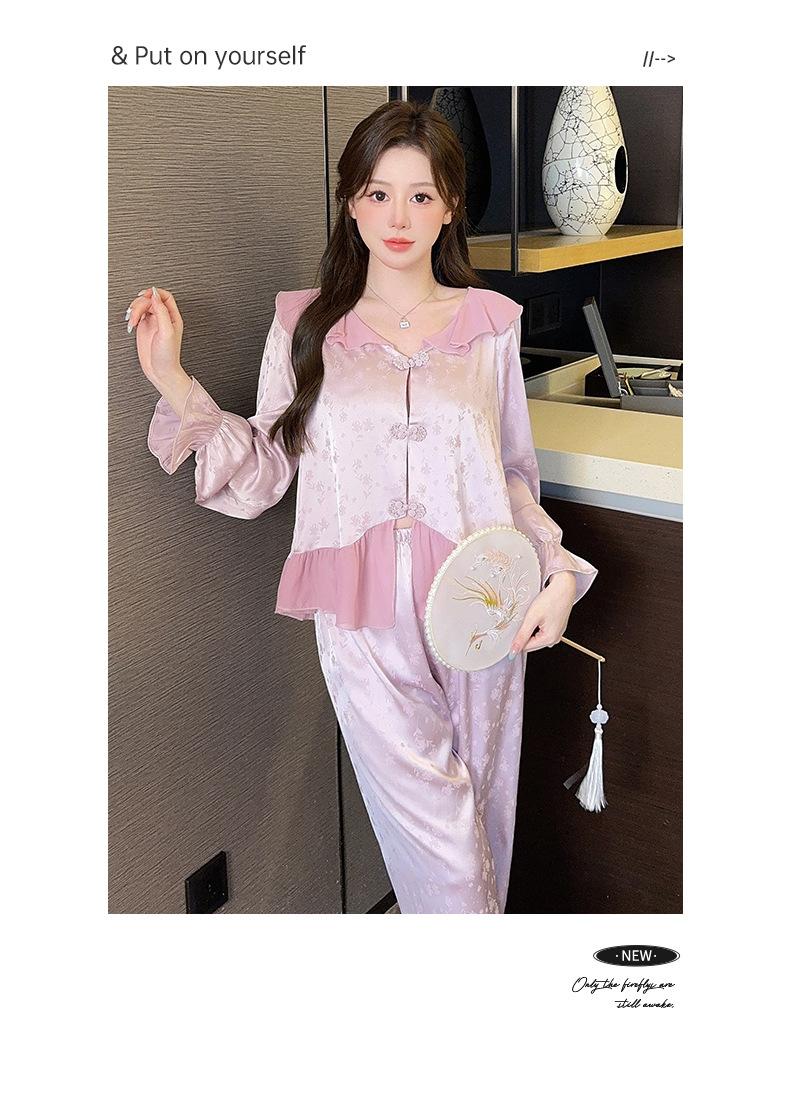 Pijama chino de otoño de dos piezas, de manga larga, suelto, de seda helada, jacquard, de alta gama, estilo retro, para el hogar.