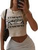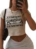 Europeo y Americano Transfronterizo 2025 Verano Nuevo Lindo Camiseta Corta de Manga Corta con Estampado de Letras para Mujer Top Cuello Redondo Ajustado