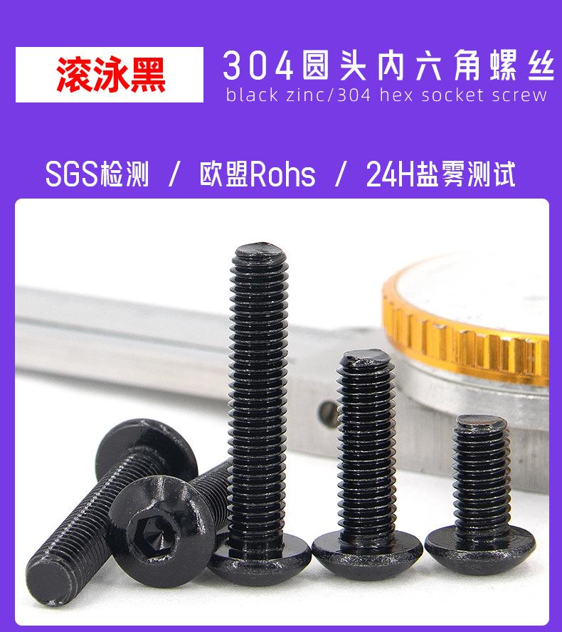Acero Inoxidable 304 Rodante Cabeza Redonda Negra Tornillo de Zócalo Hexagonal ISO7380 Tornillo Hexagonal de Copa Redonda M2-M10