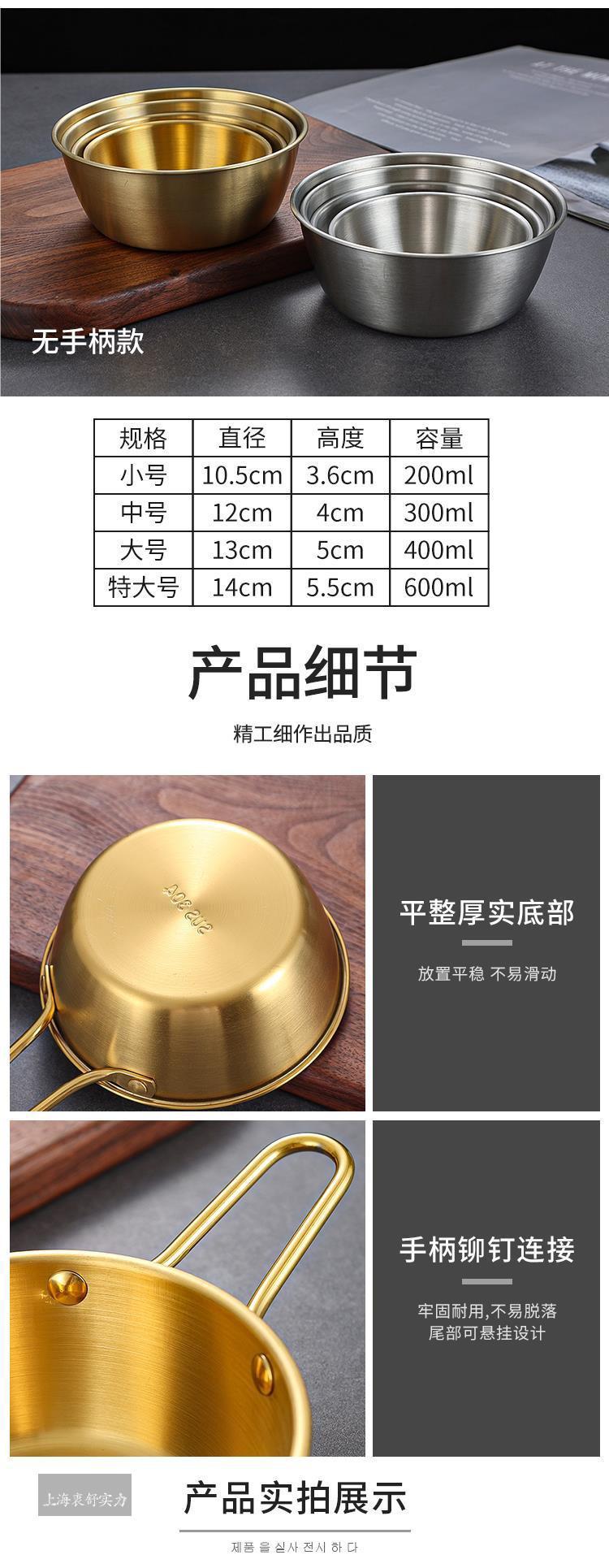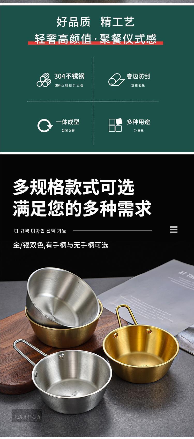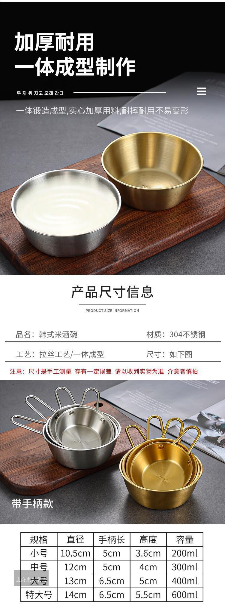 Cuenco de arroz coreano de acero inoxidable 304 para vino, con asas, para condimentos, ideal para restaurantes, para cocinar y calentar.