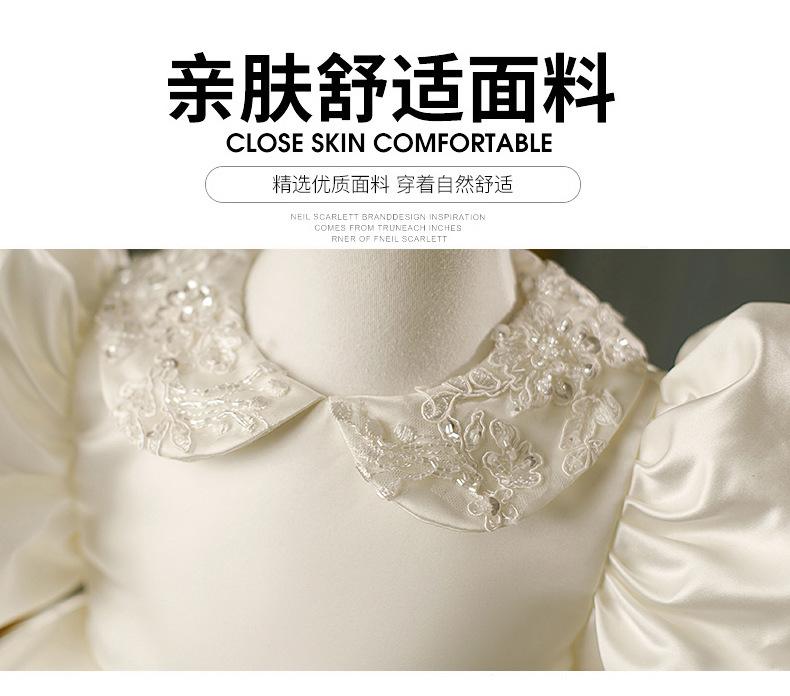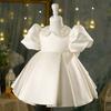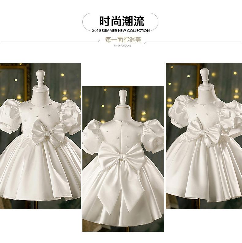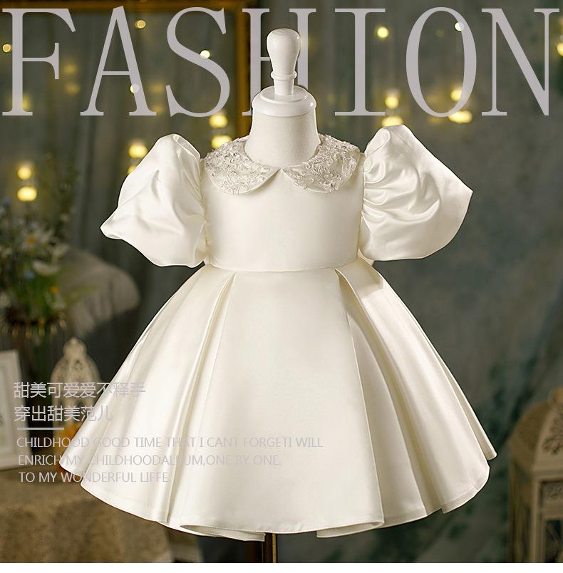 Vestido de bebé de un año vestido de actuación de piano niña blanco manga abullonada corto lentejuela modelo pasarela disfraz de actuación