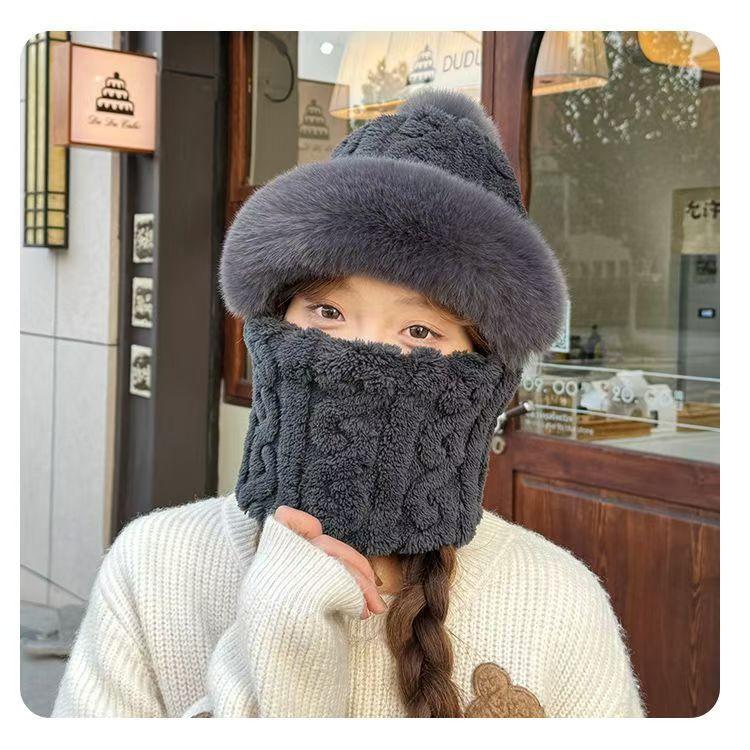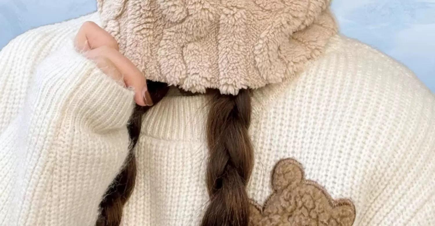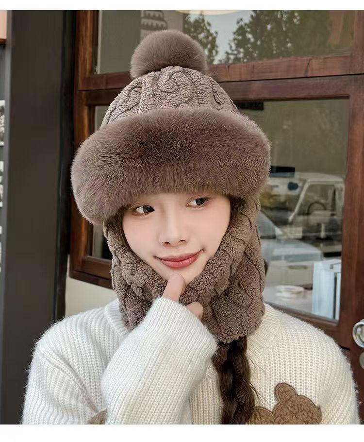 Winter cycling all-inclusive hat/hat for women autumn and winter/cute bear hat/middle-aged and elderly autumn ...