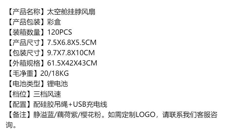 Nuevo Mini Ventilador Portátil de Mano Colgante de Cuello sin Aspas Carga USB de Tres Velocidades Regalo Logo