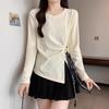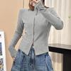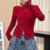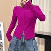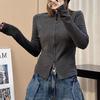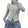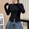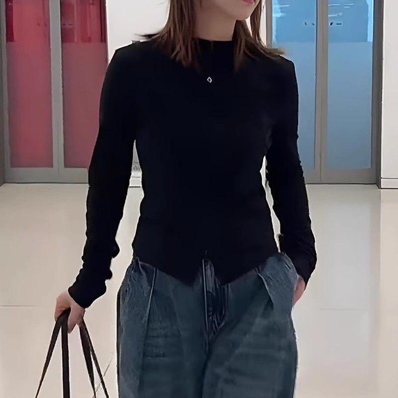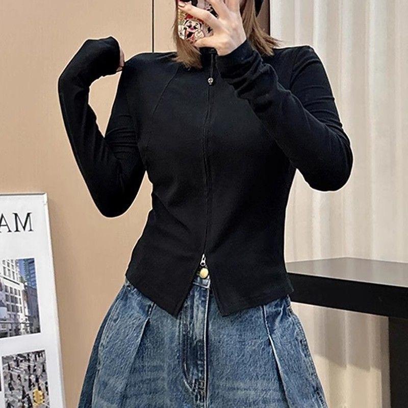 Talla grande Camiseta de manga larga con cuello vertical y doble cremallera, lijada, para primavera y otoño, para chica gordita, corte entallado, adelgazante, cálida, capa base interior, top
