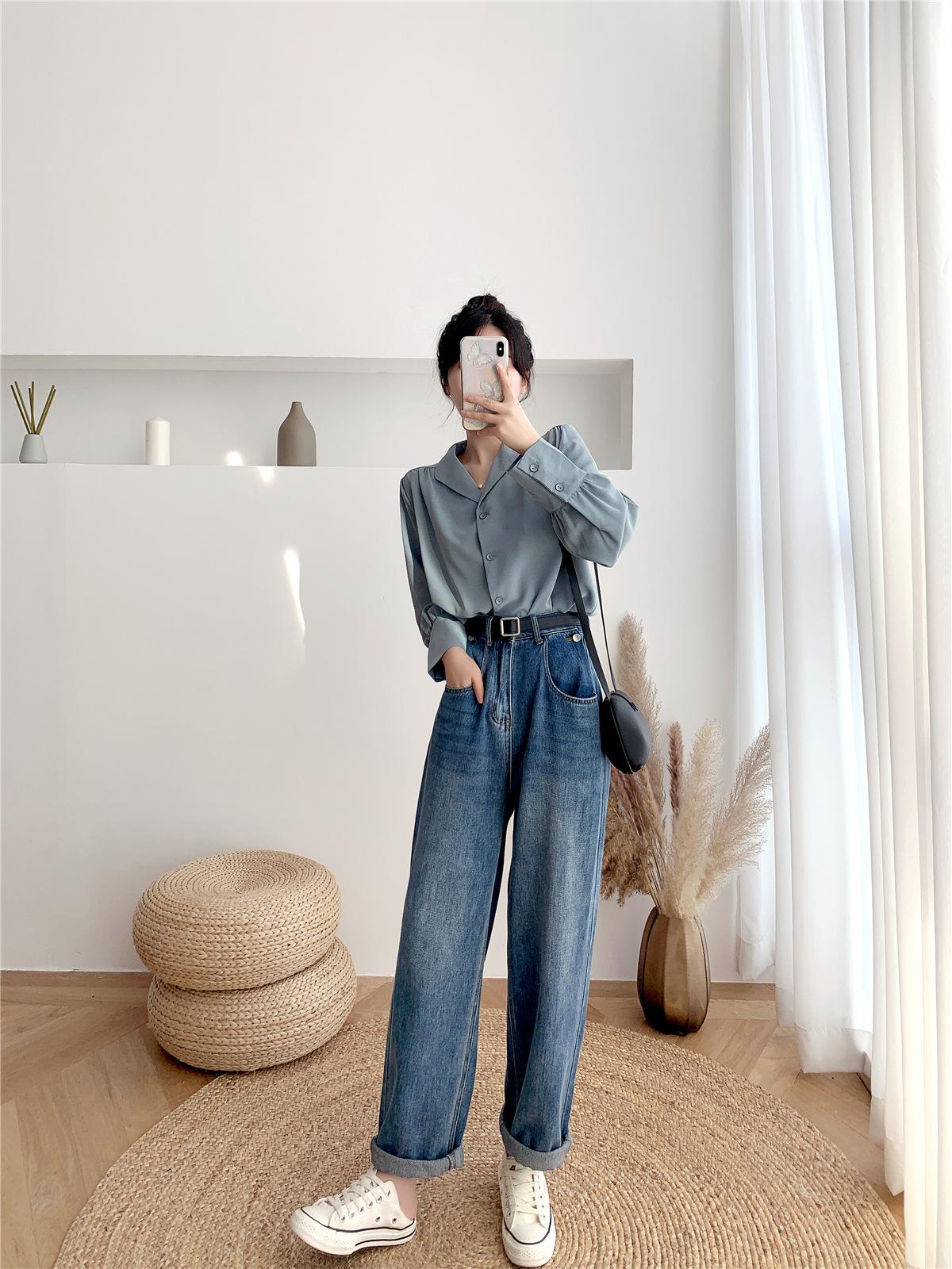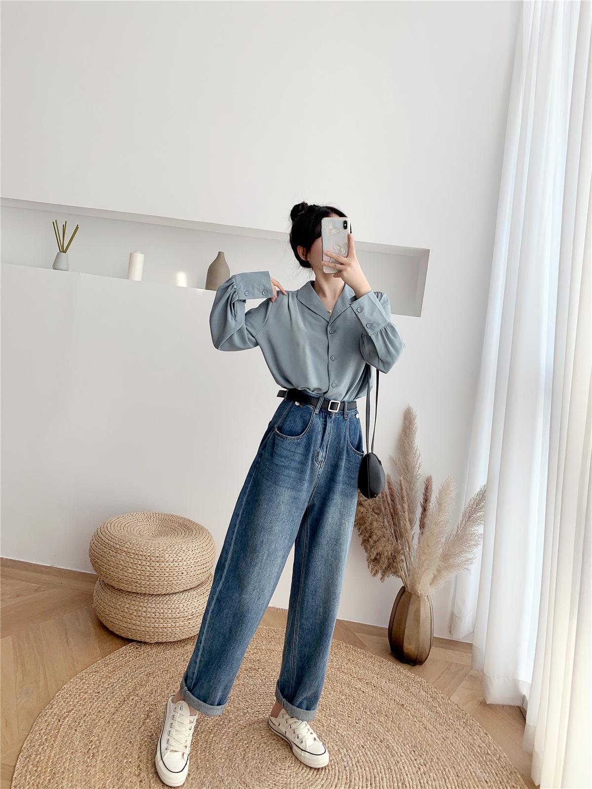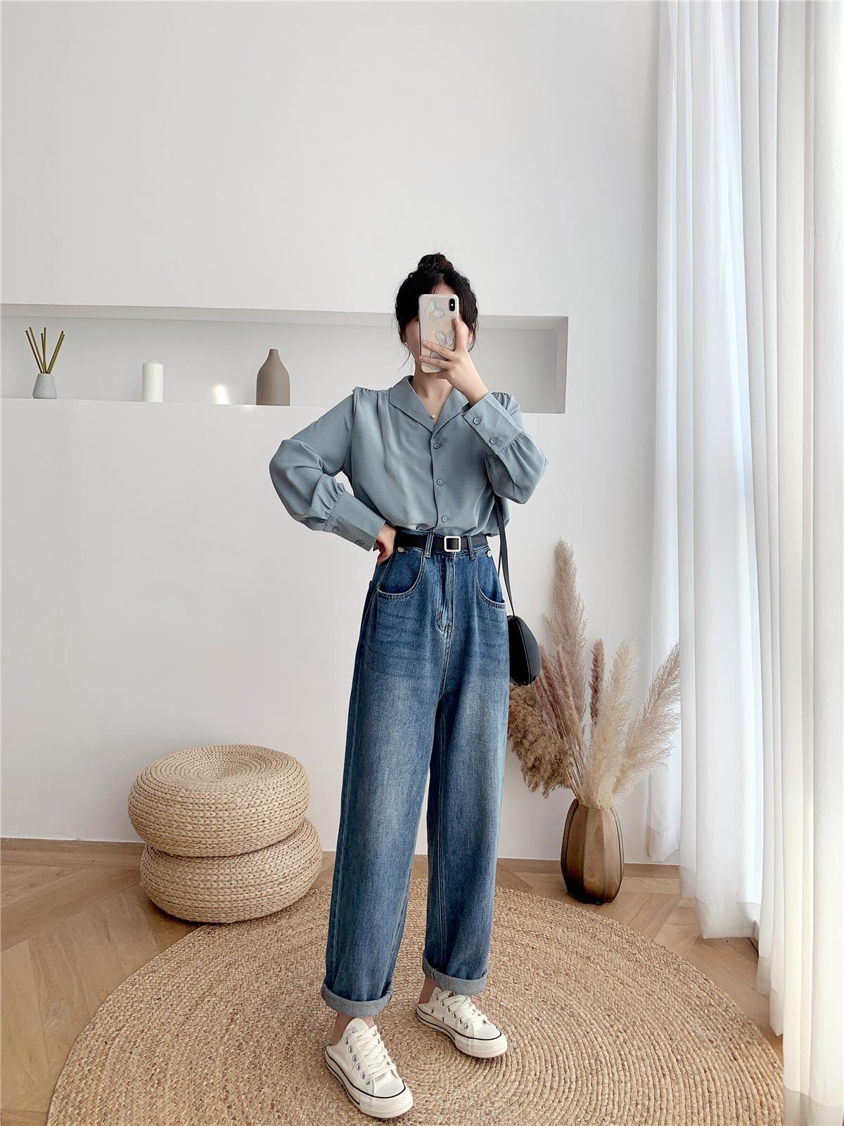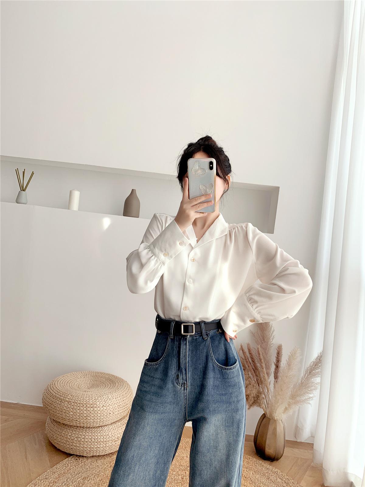Compra Camisa francesa retro de color sólido, diseño para mujer, estilo coreano, primavera y otoño 2023, blusa holgada de manga larga para mujer al por mayor en Joom.pro