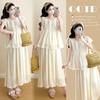 Vestido de verano para embarazadas, holgado, adelgazante, estilo francés, con mariposas, midi, disponible en stock en 2025.