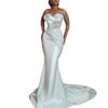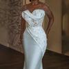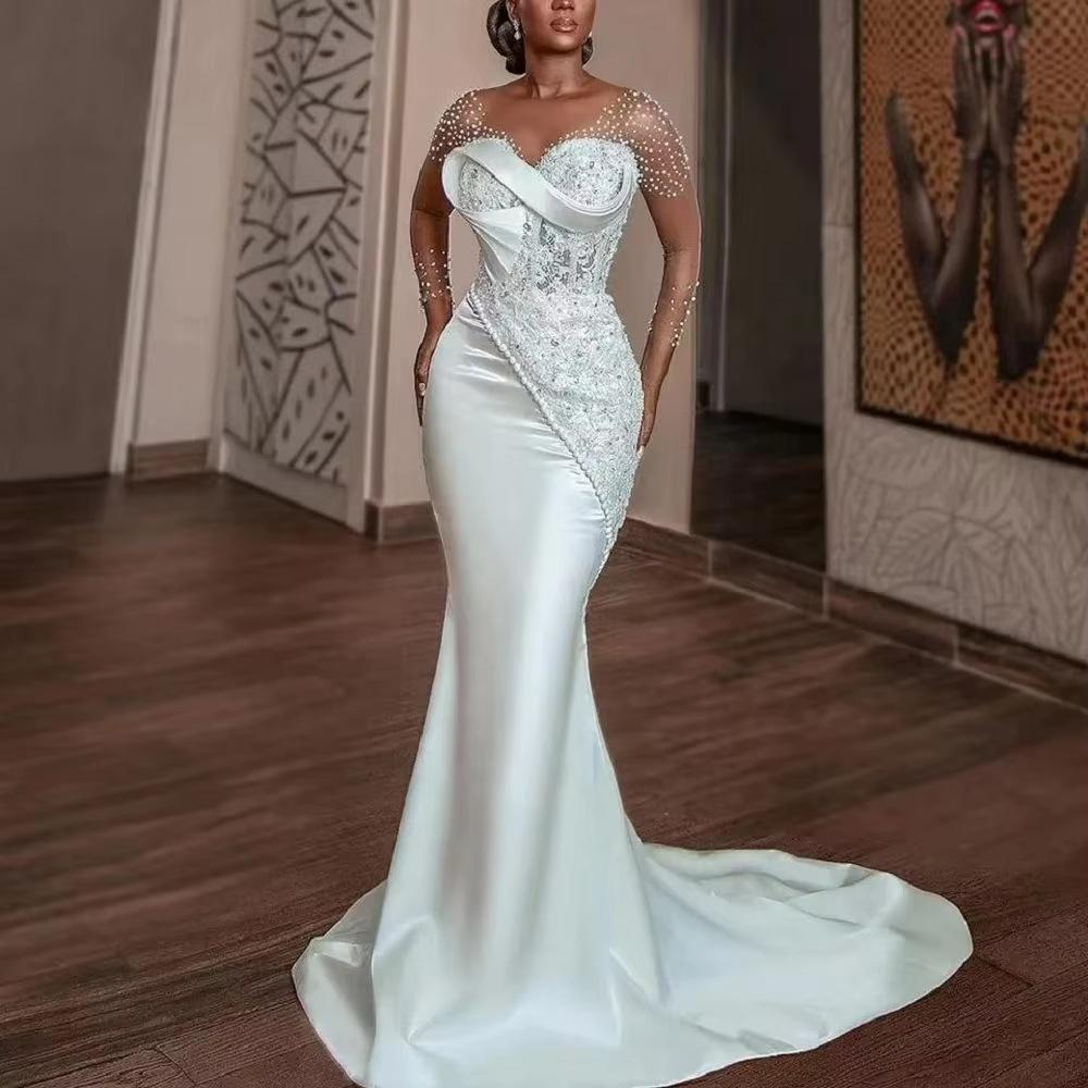 Vestido de Novia de Alta Gama Blanco Elegante Manga Larga 2025 Nuevo Delgado Cola de Pez Vestido de Cumpleaños Belleza Africana Mujeres Sexys