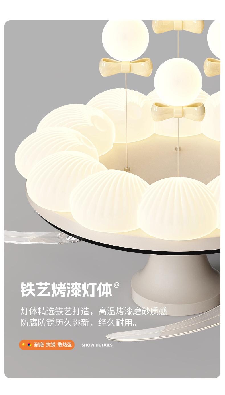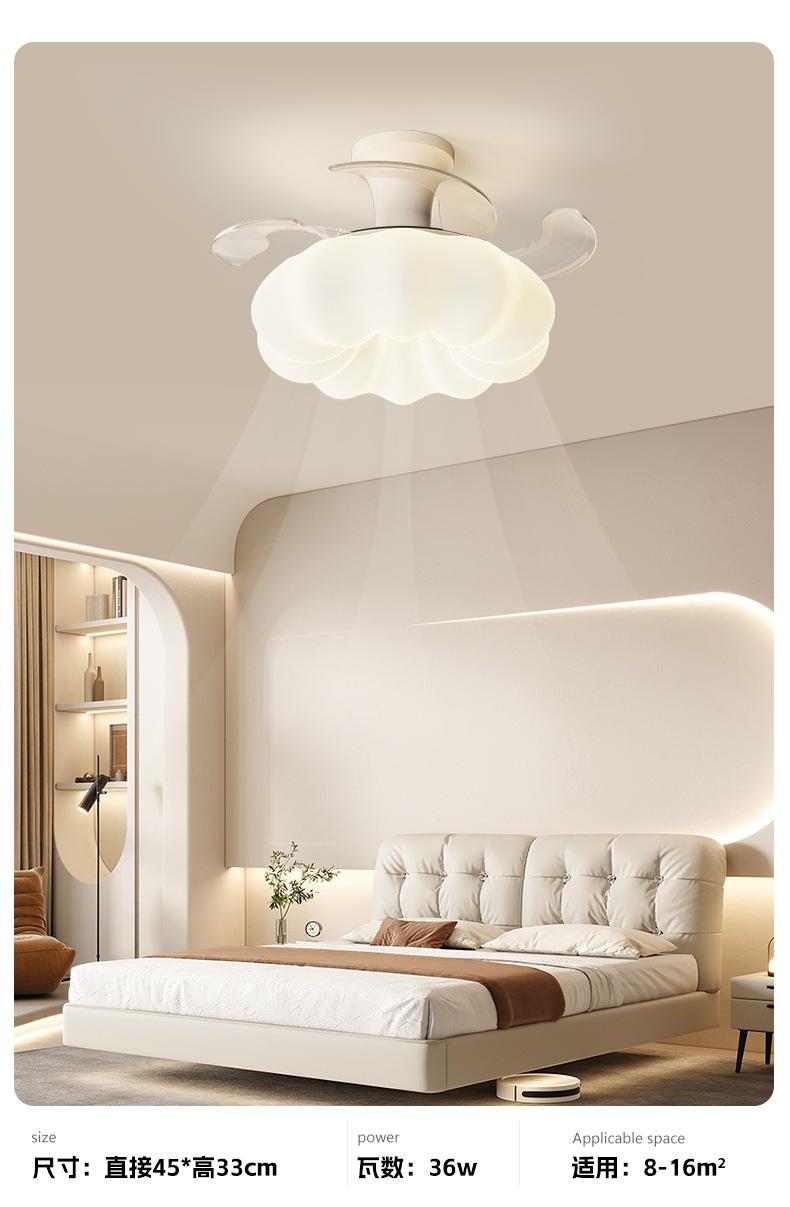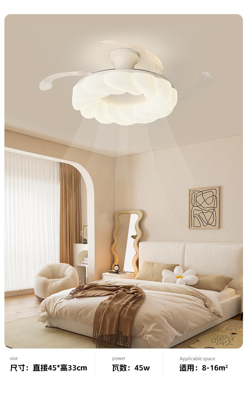 Lámpara de ventilador para dormitorio principal estilo crema candelabro de restaurante 2025 nuevo habitación infantil simple moderno lámpara de ventilador eléctrico invisible