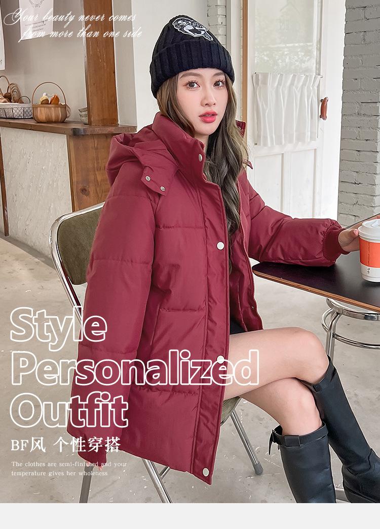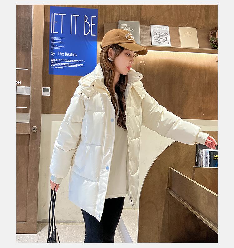 Abrigo de Algodón para Mujer de Largo Medio 2025 Invierno Nuevo Estilo Coreano Chaqueta de Algodón Holgada Abrigo Acolchado Grueso