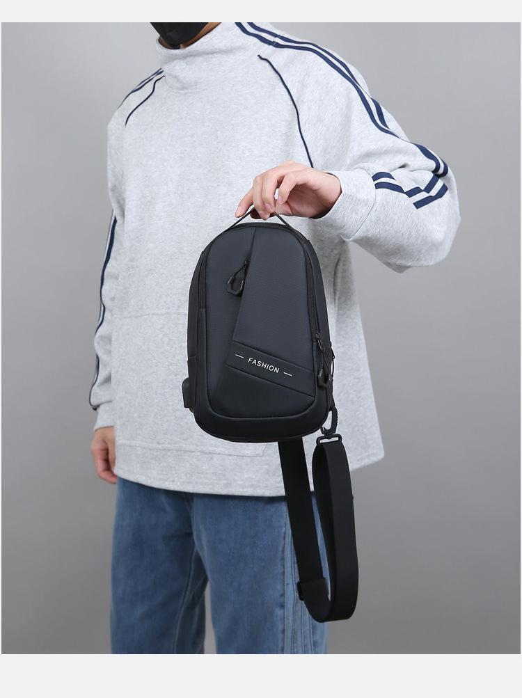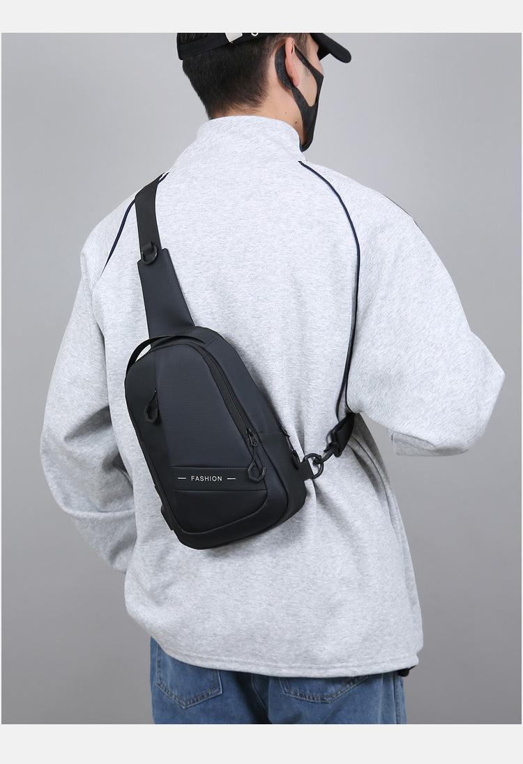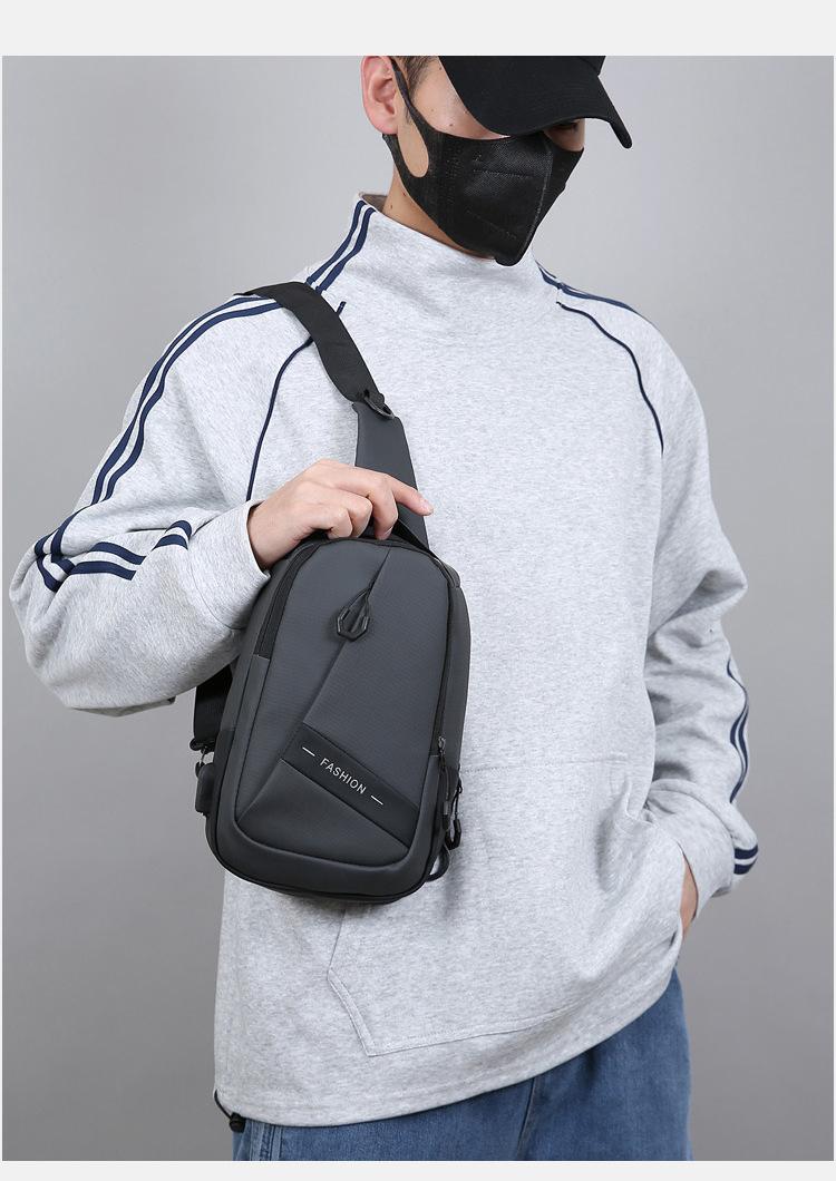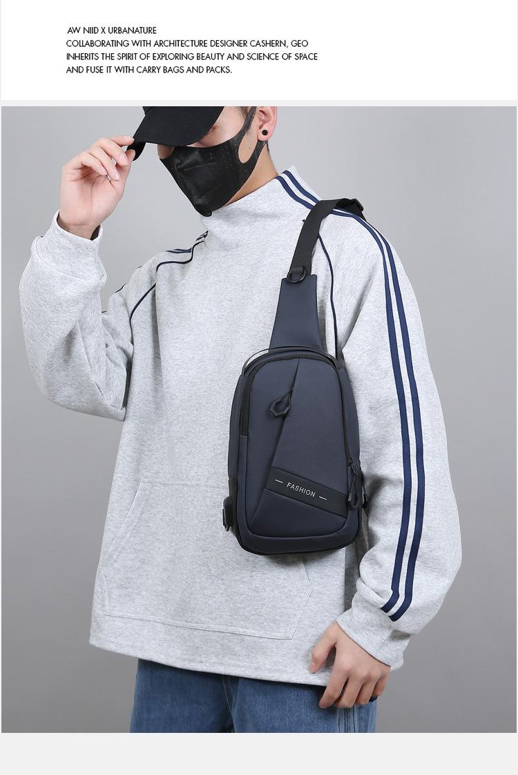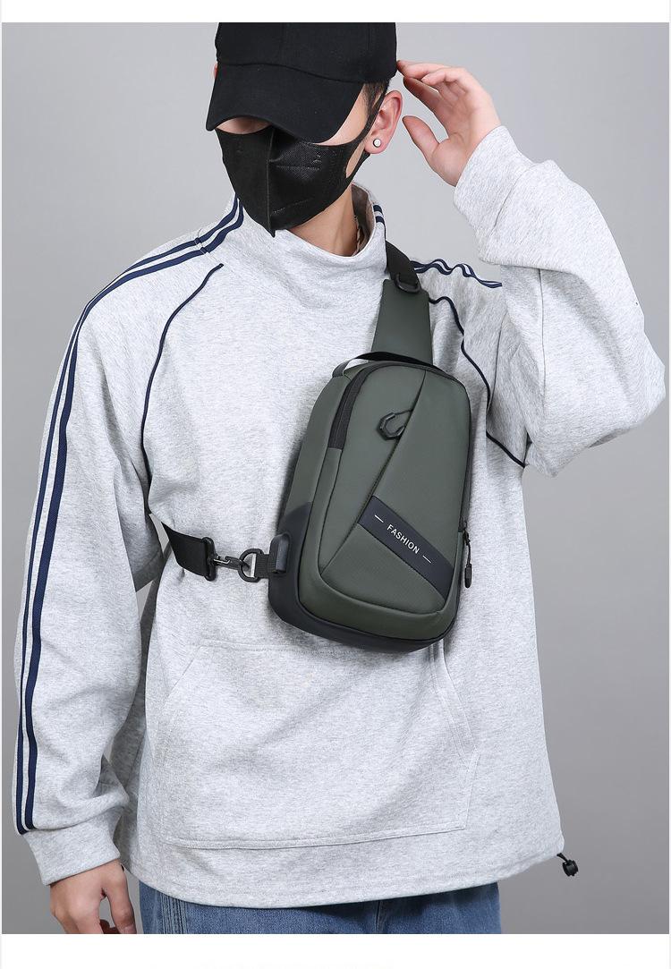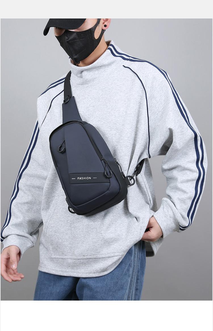 Bolsa de Pecho Multifuncional para Hombre Casual de Gran Capacidad Deportiva Sencilla Bandolera Textil con Película de Cuero a la Moda Bolso de Hombro Combinable