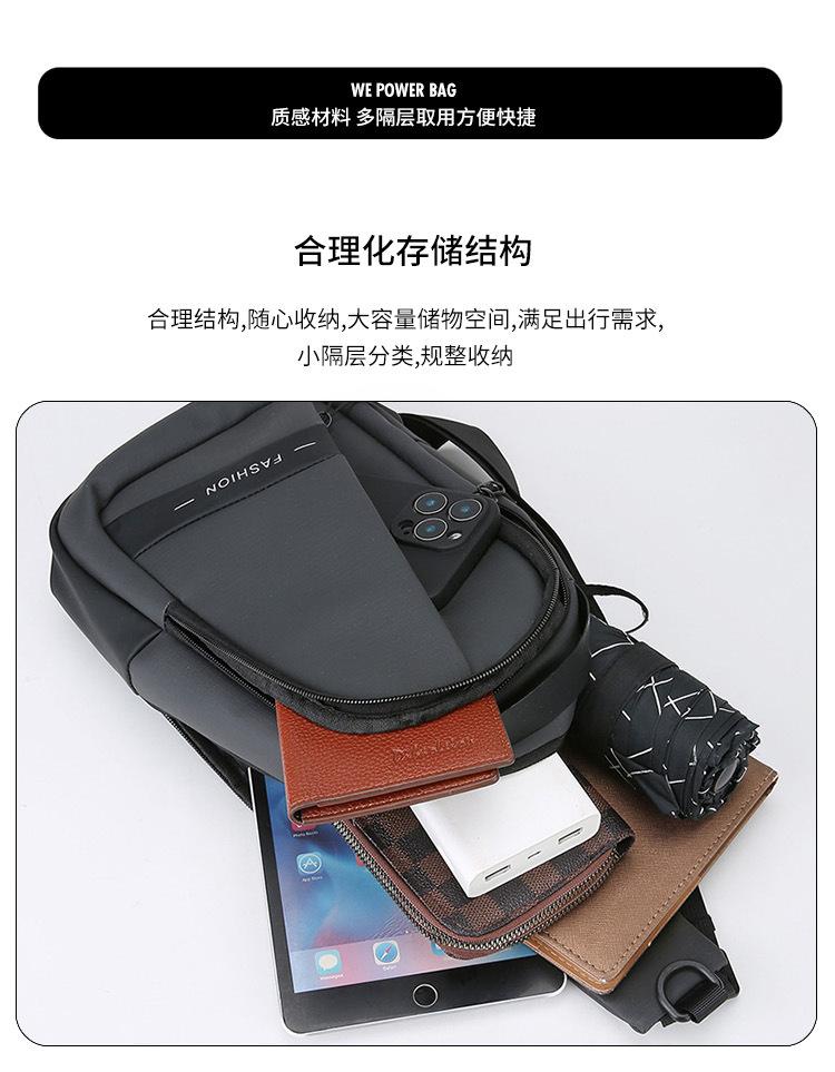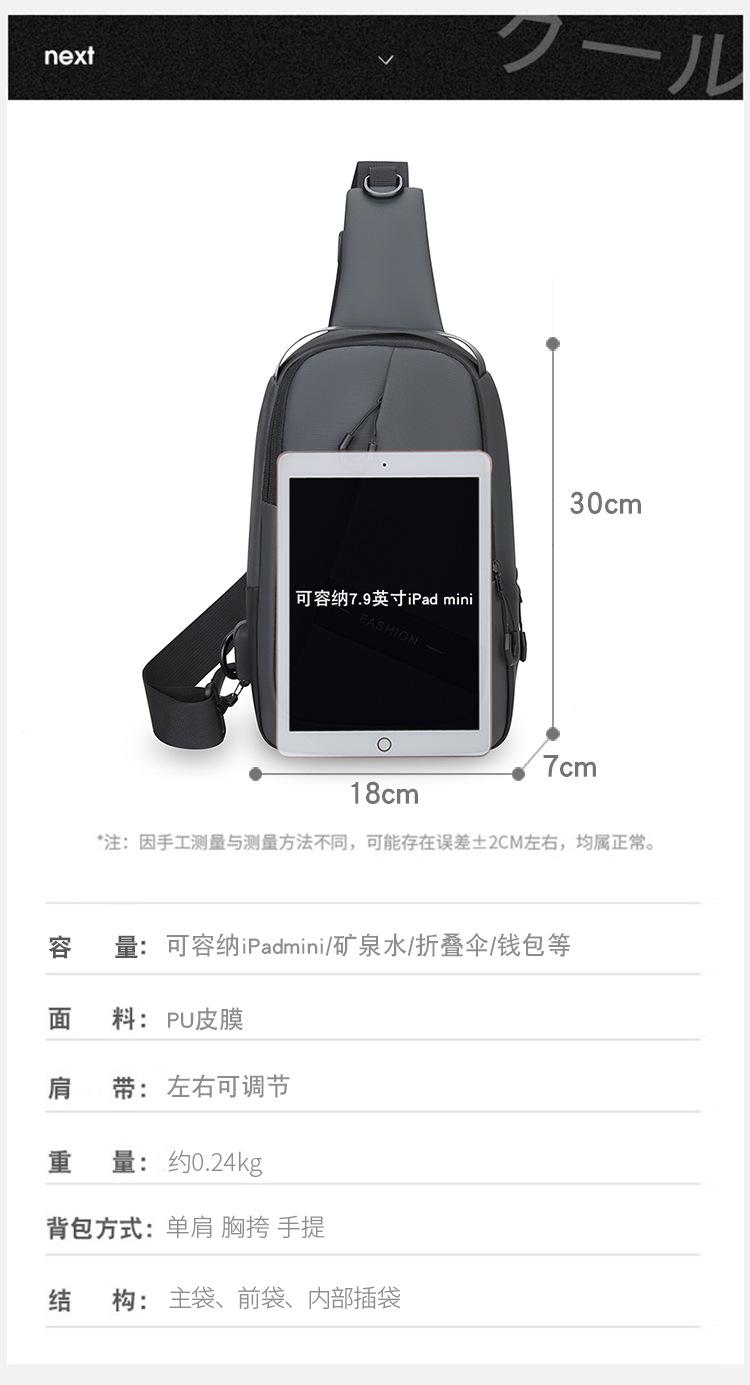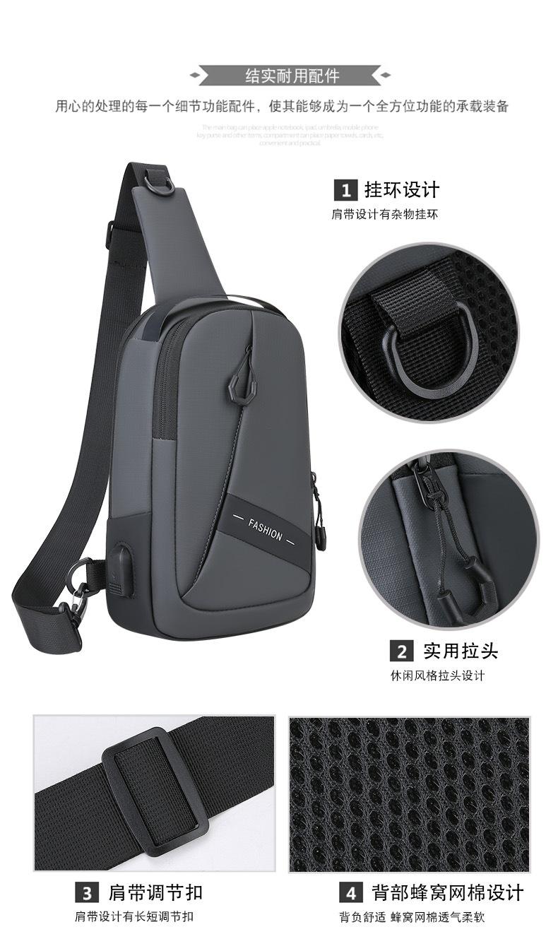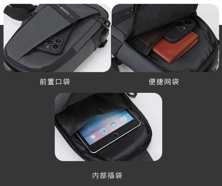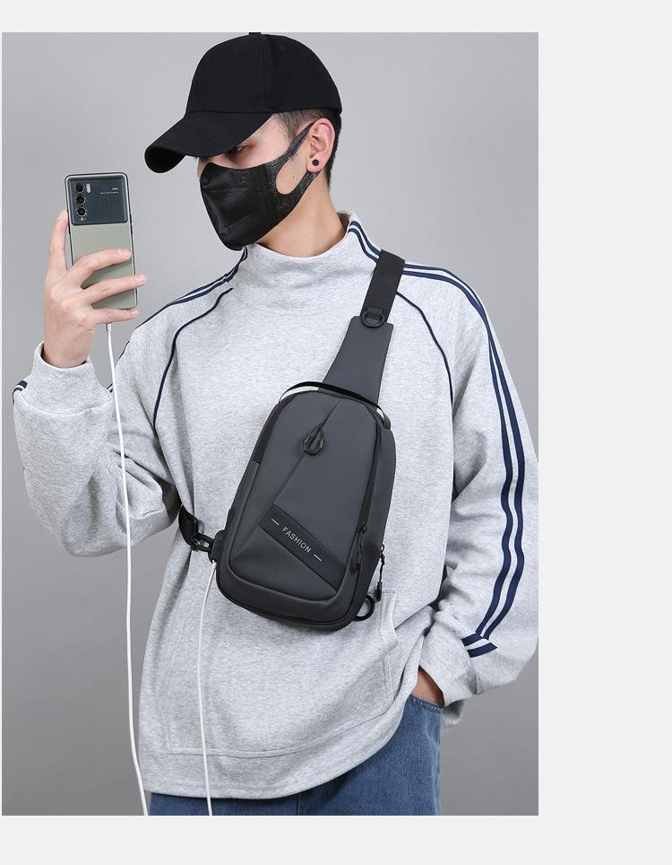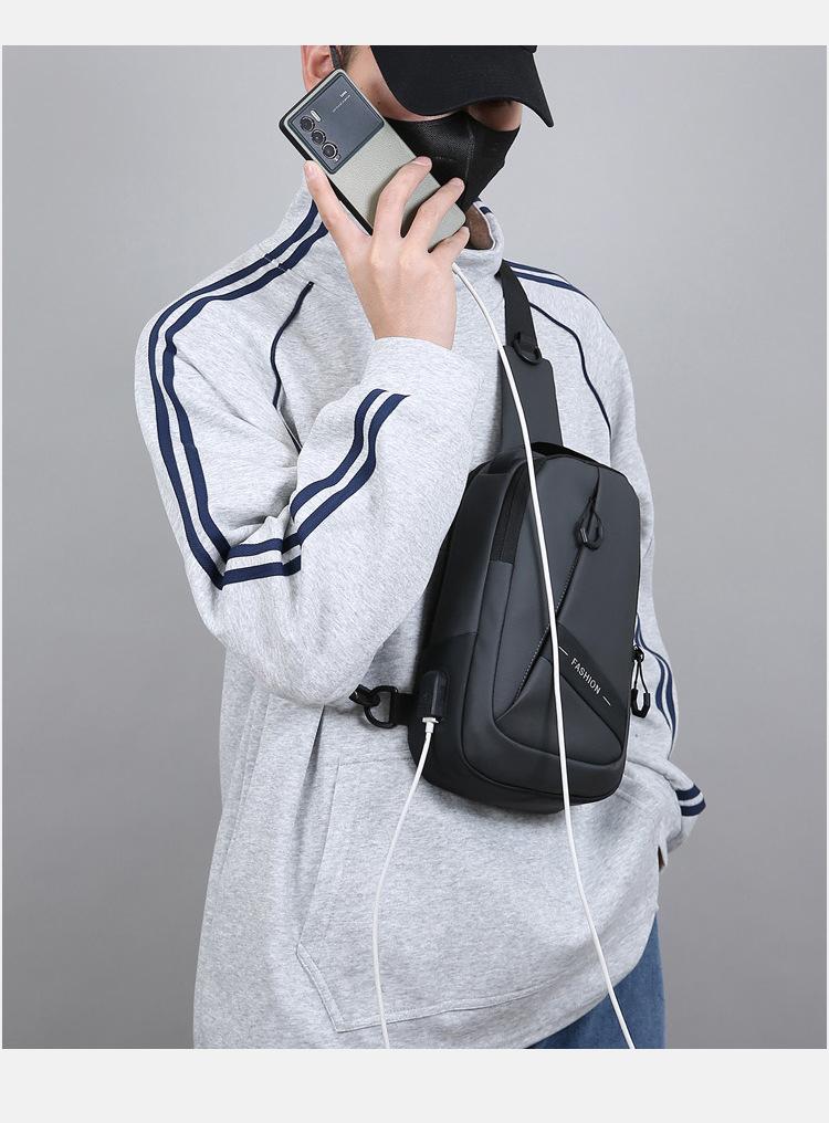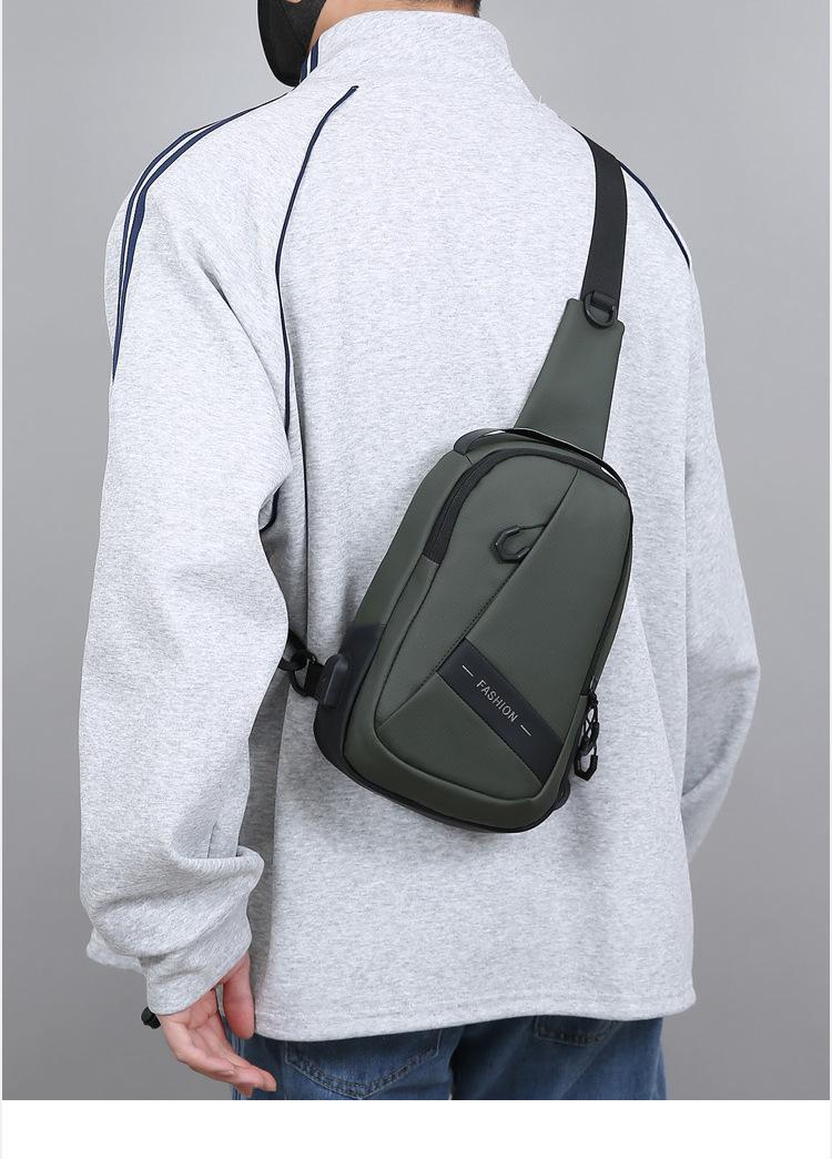 Bolsa de Pecho Multifuncional para Hombre Casual de Gran Capacidad Deportiva Sencilla Bandolera Textil con Película de Cuero a la Moda Bolso de Hombro Combinable