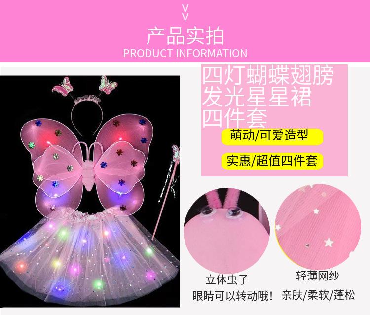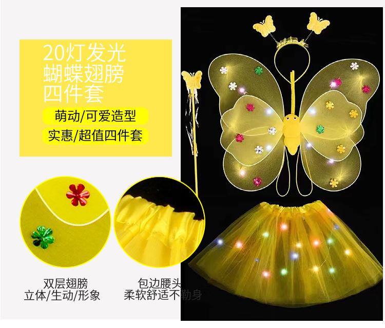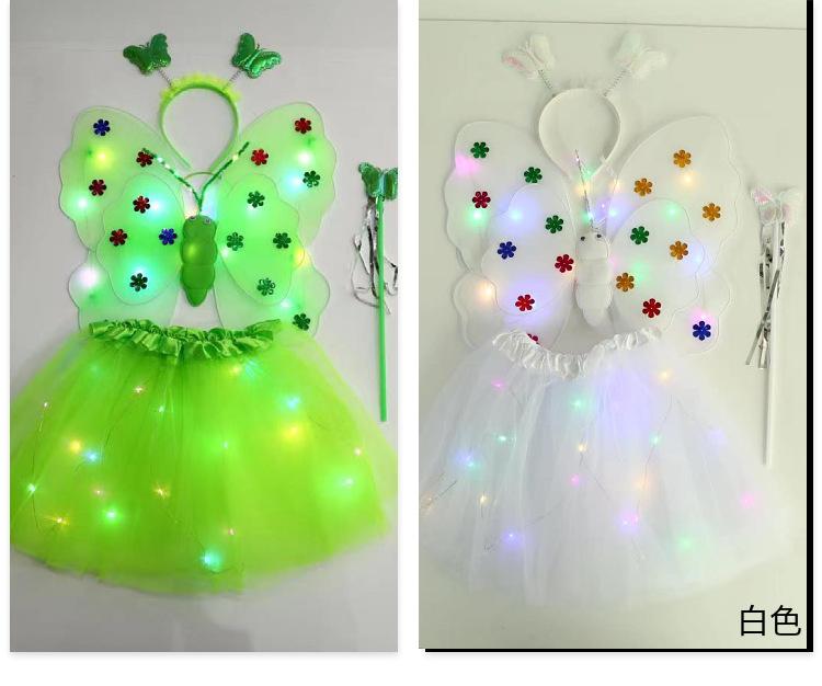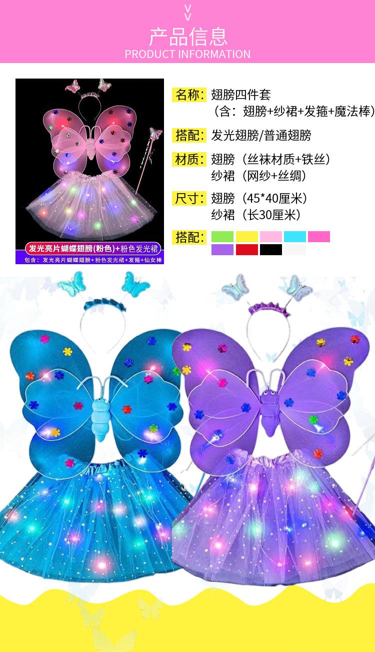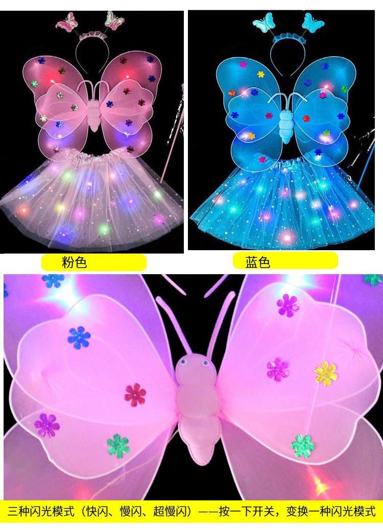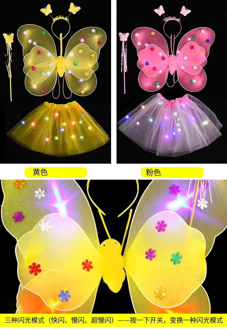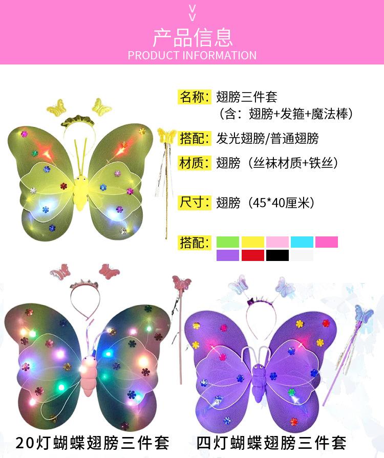 Alas de mariposa luminosas para la espalda de la niña, juguete de destello para niños, maravillosa varita mágica de hadas, juego de tres piezas de hadas de flores