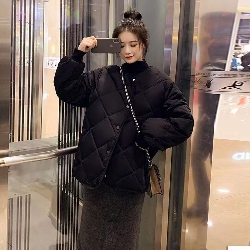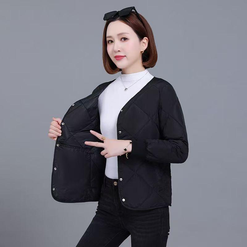 Forro ligero de plumón de algodón para mujer, estilo corto 2025, nueva moda coreana, chaqueta de algodón acolchada para superponer y para el calor