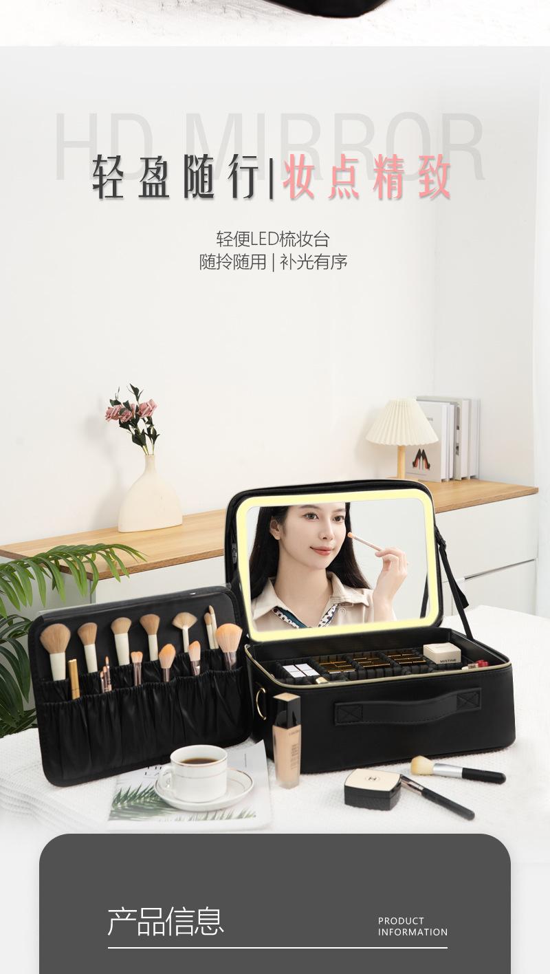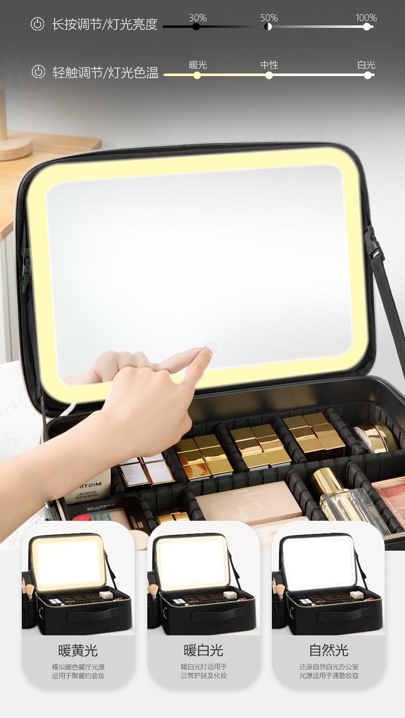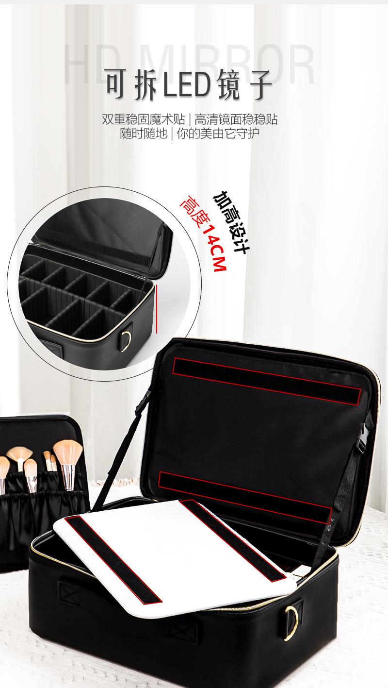 Bolsa de cosméticos nueva de alta calidad con espejo de gran capacidad portátil bolsa de almacenamiento de cosméticos lámpara led estuche de cosméticos