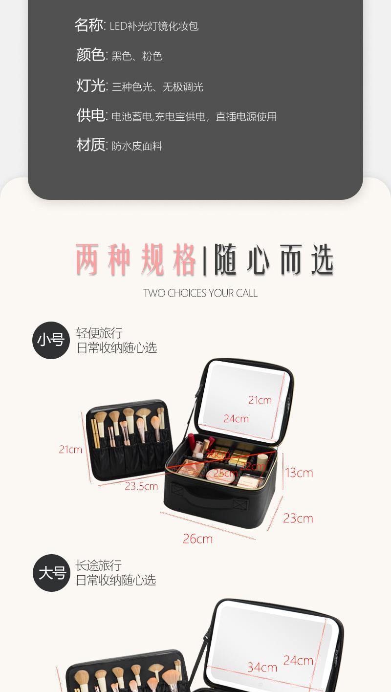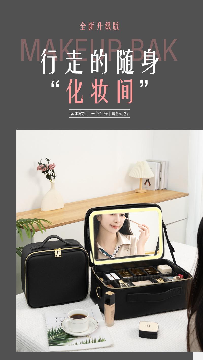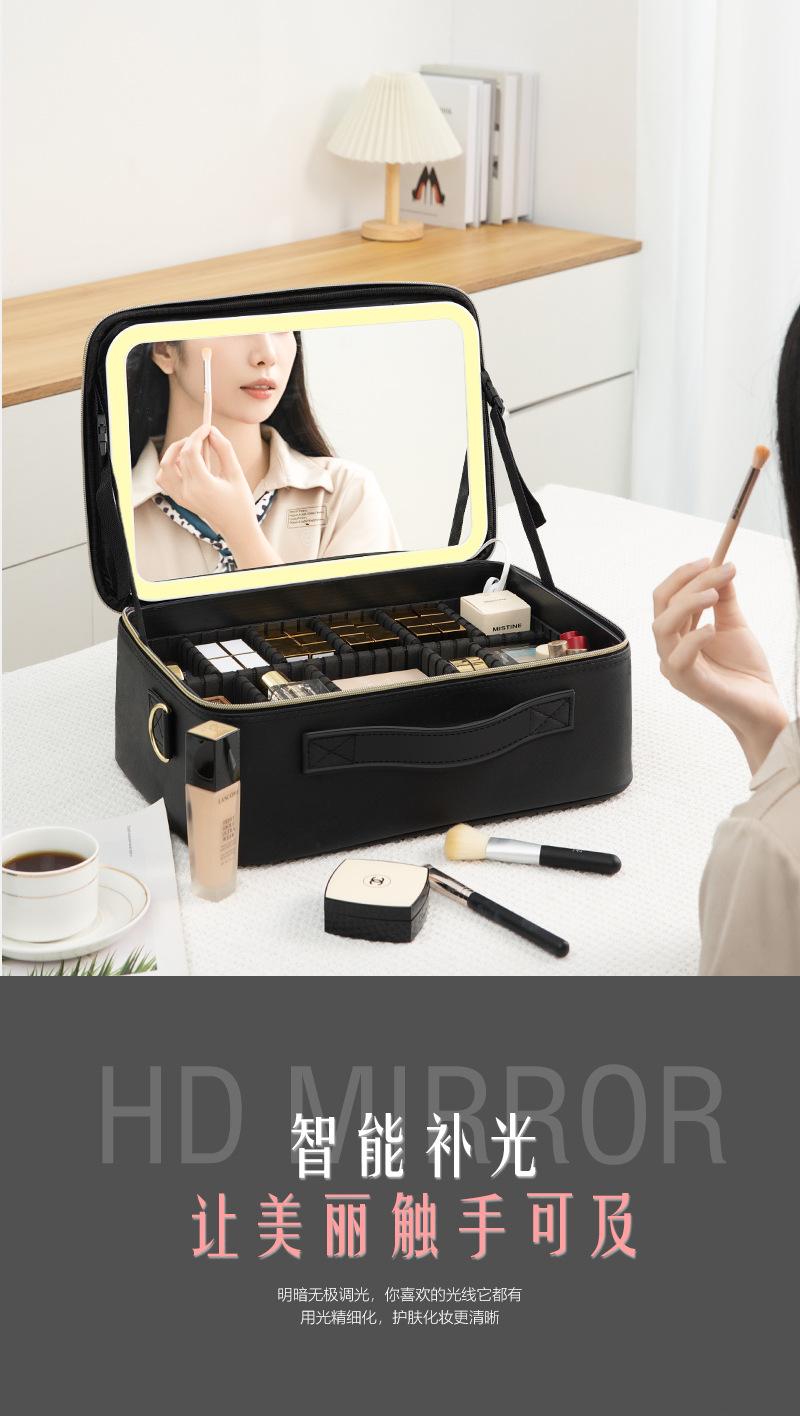 Bolsa de cosméticos nueva de alta calidad con espejo de gran capacidad portátil bolsa de almacenamiento de cosméticos lámpara led estuche de cosméticos