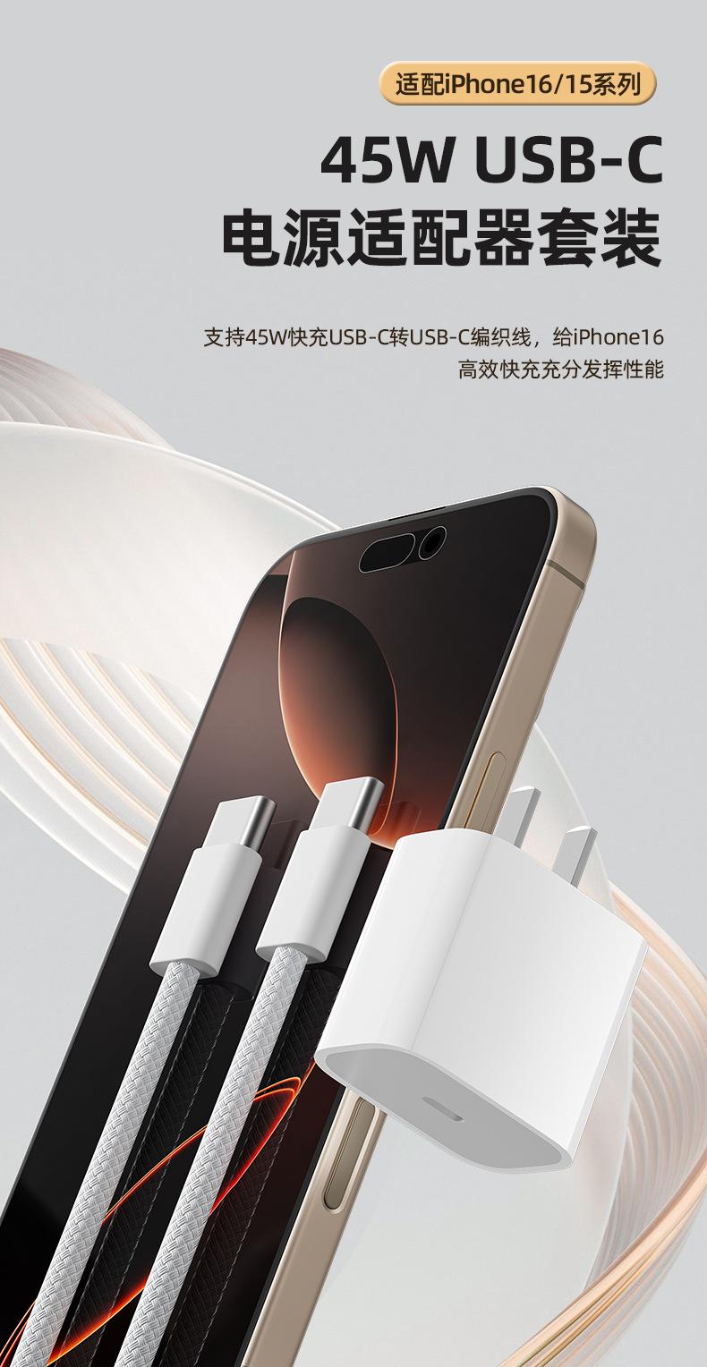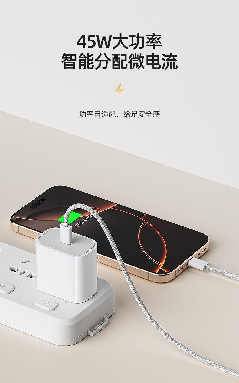 Cable de datos PD45W compatible con iPhone 16, Apple 15, certificación 3C, compatible con cabezal de carga rápida.